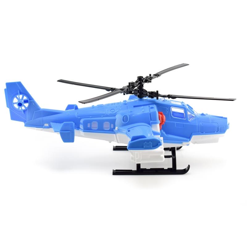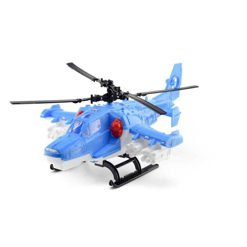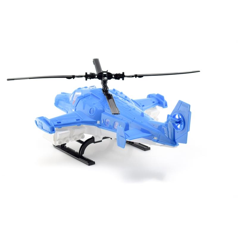 Длина вертолета — 40 см, что обеспечивает удобство в использовании и реалистичный масштаб для сюжетных игр. Шасси выполнено в виде прочных полозков, а кабина оснащена прозрачными окнами. Цвет — в ассортименте, отгружается один товар, выбор цвета осуществляется случайным образом.