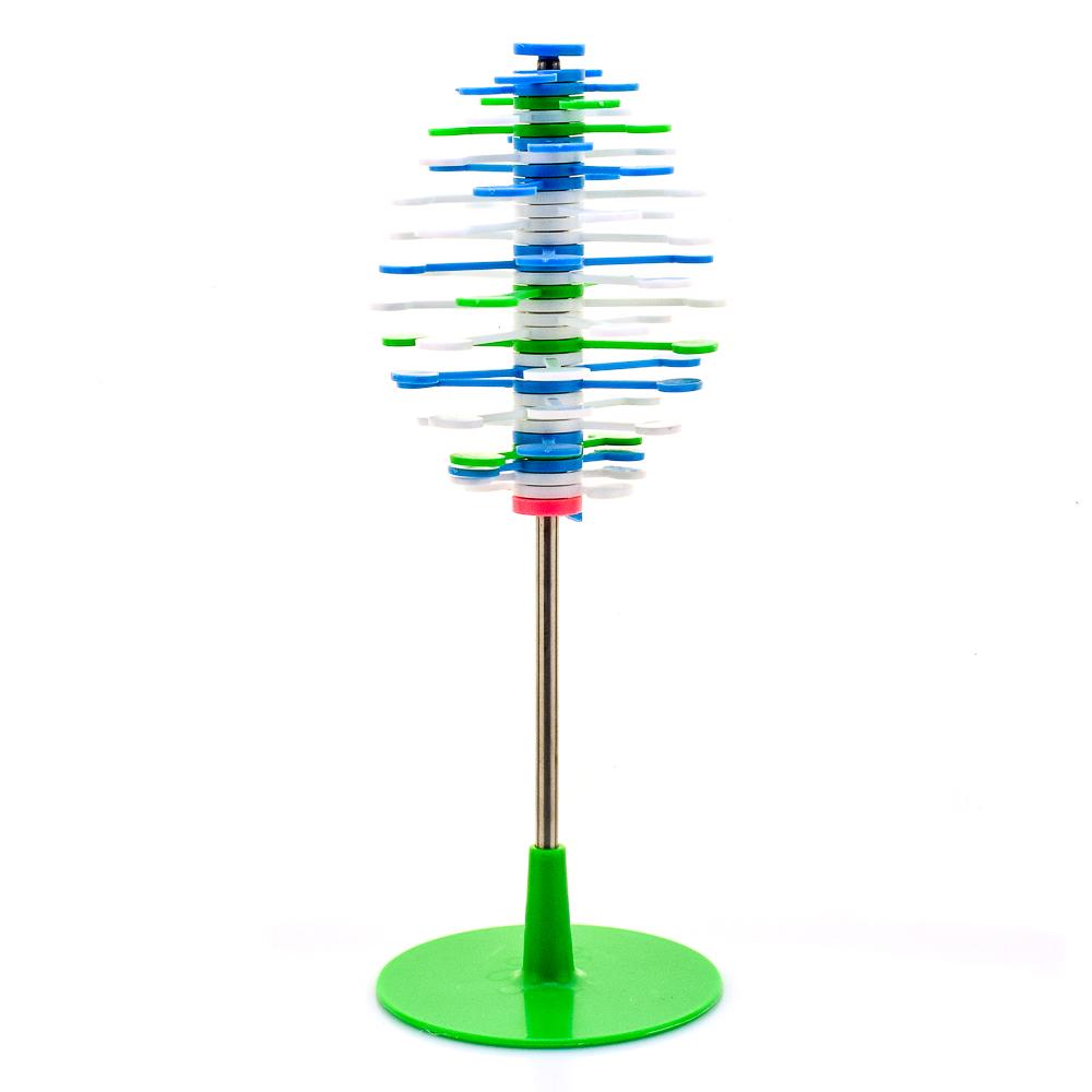 Достаточно взять игрушку за железное основание, поместить между ладоней и несколько раз прокрутить. В результате она выстроится в уникальную последовательность, которая может стать увлекательным занятием или декоративным элементом. Подходит для взрослых и детей, желающих обрести гармонию и уют в домашней или офисной обстановке.