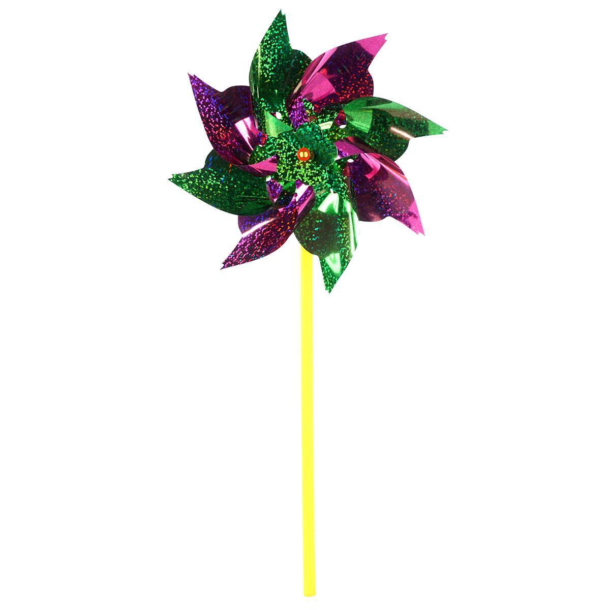 Вертушка детская яркая на палочке 16.5*36 см, фольга/пластик, разноцветная