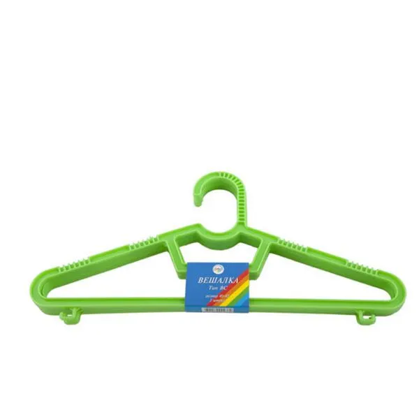 Вешалка пластиковая зеленая 44-46см, тип AC, с нижней перекладиной и крючками