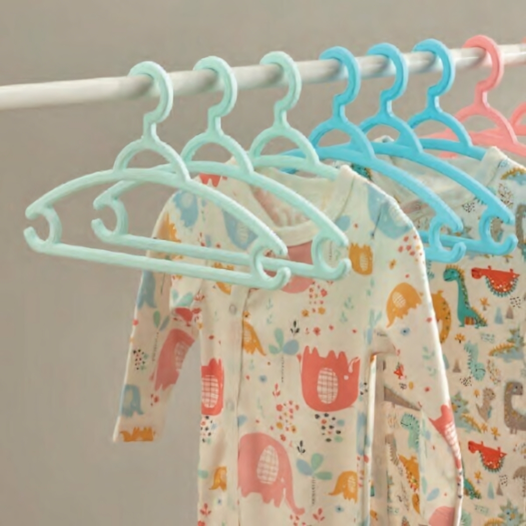 Пластиковые вешалки с закругленными краями специально разработаны для детской одежды. Комплект из 6 штук в ярких цветах превратит рутинное хранение вещей в организованный процесс.