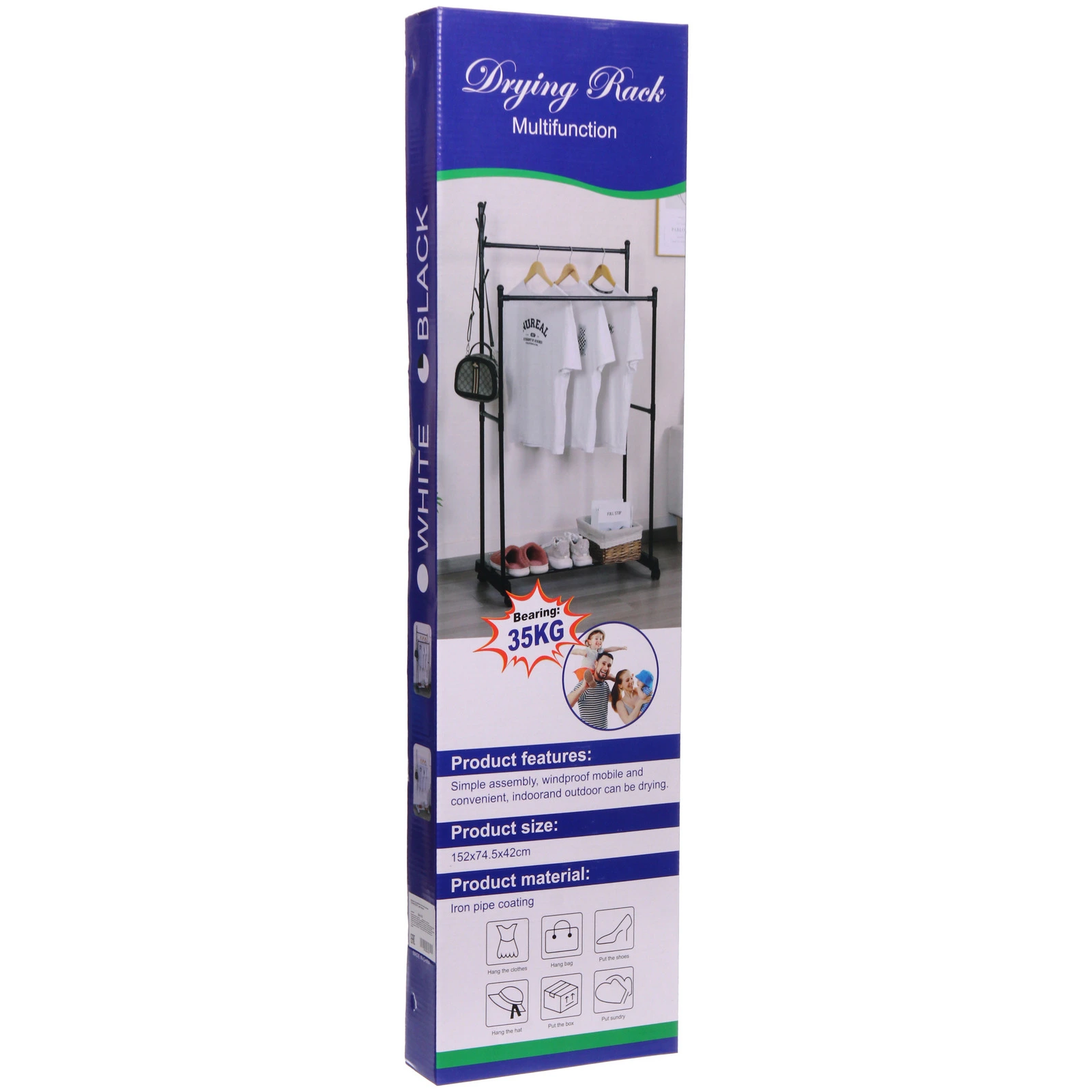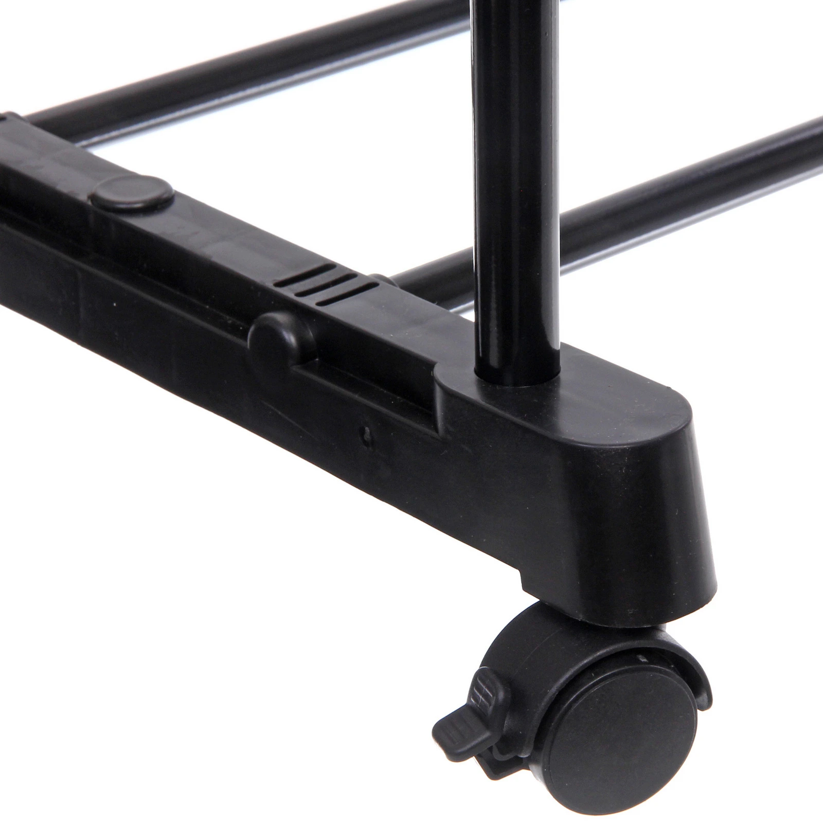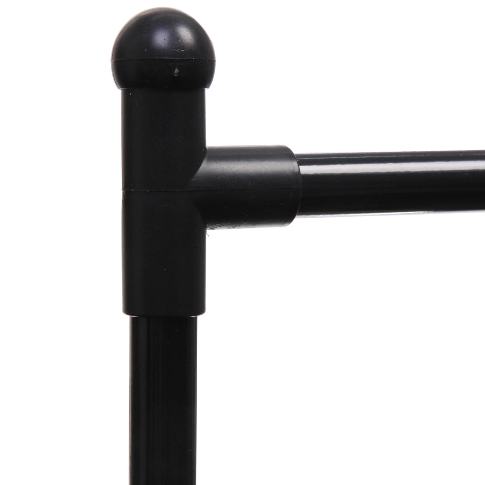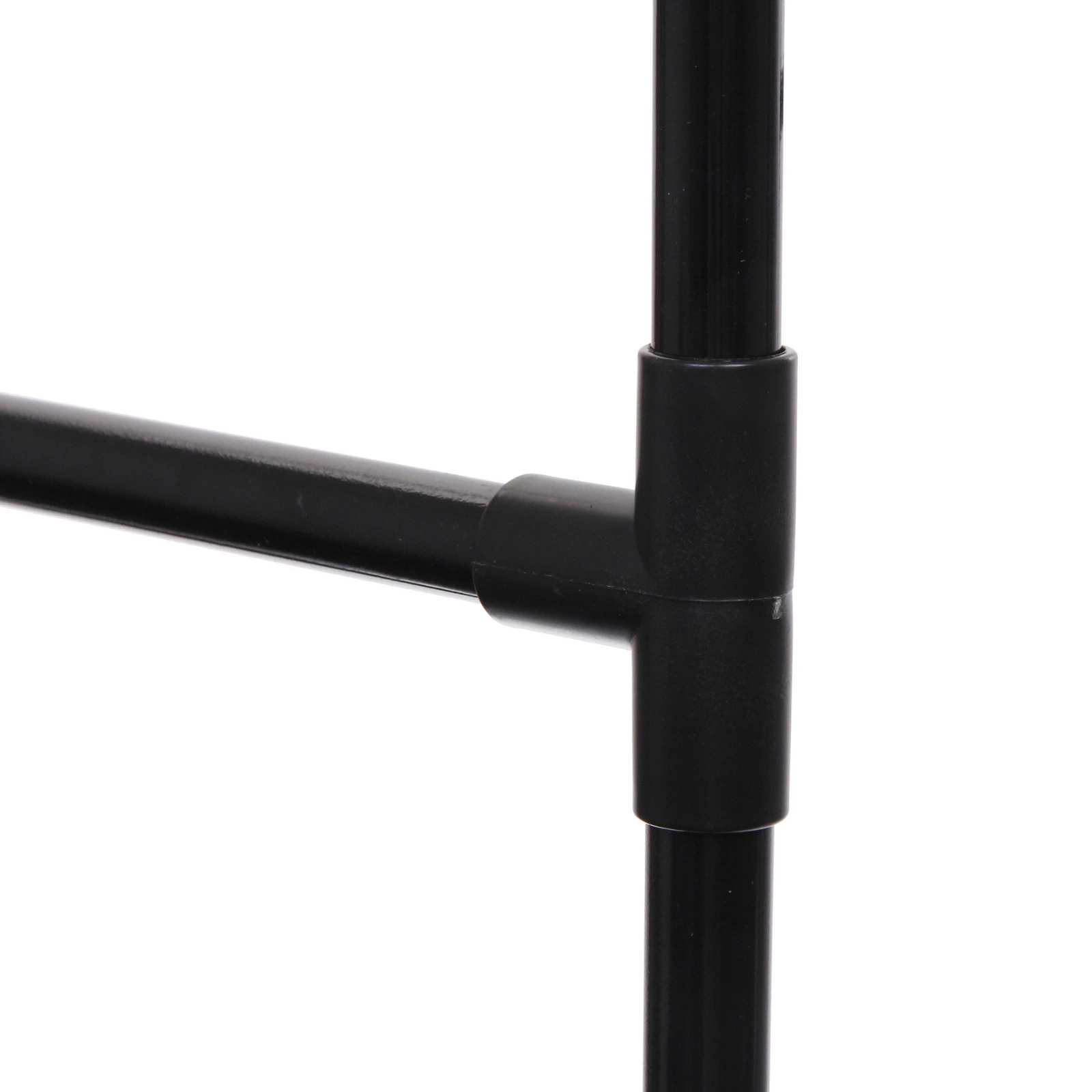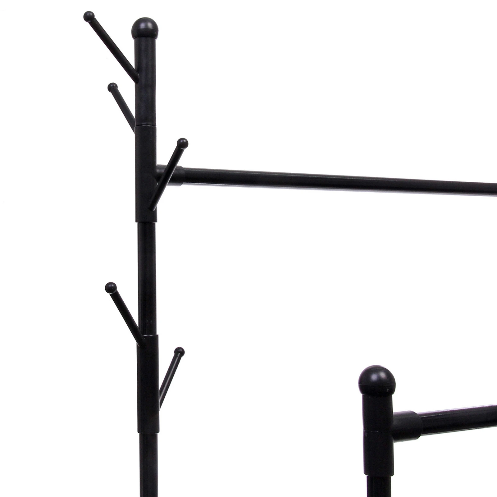 Конструкция выполнена из металла и прочного пластика, что обеспечивает устойчивость и аккуратный внешний вид. Модель выдерживает нагрузку до 25 кг, позволяя разместить повседневную и верхнюю одежду без риска деформации. Черный цвет смотрится универсально и легко сочетается с любым интерьером.