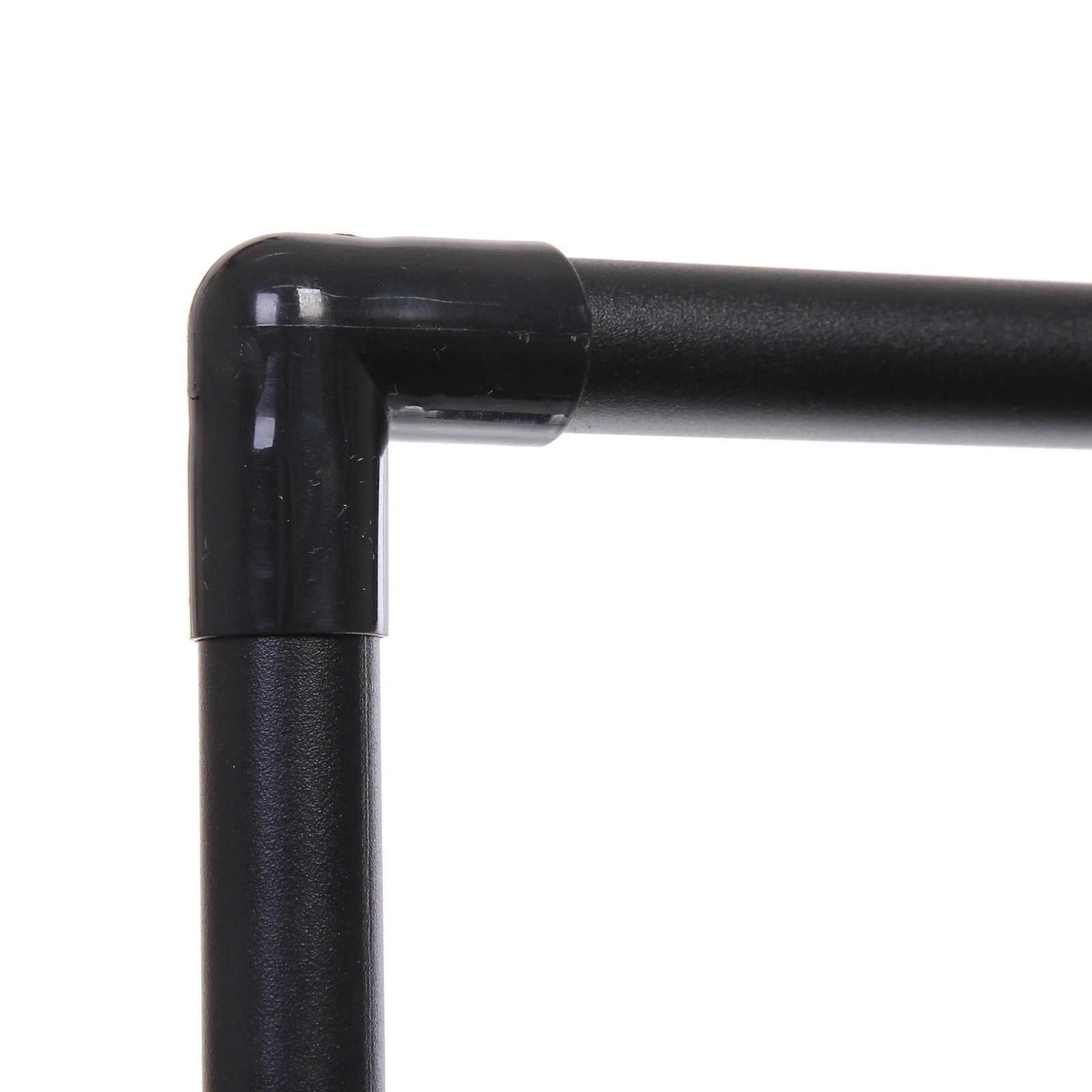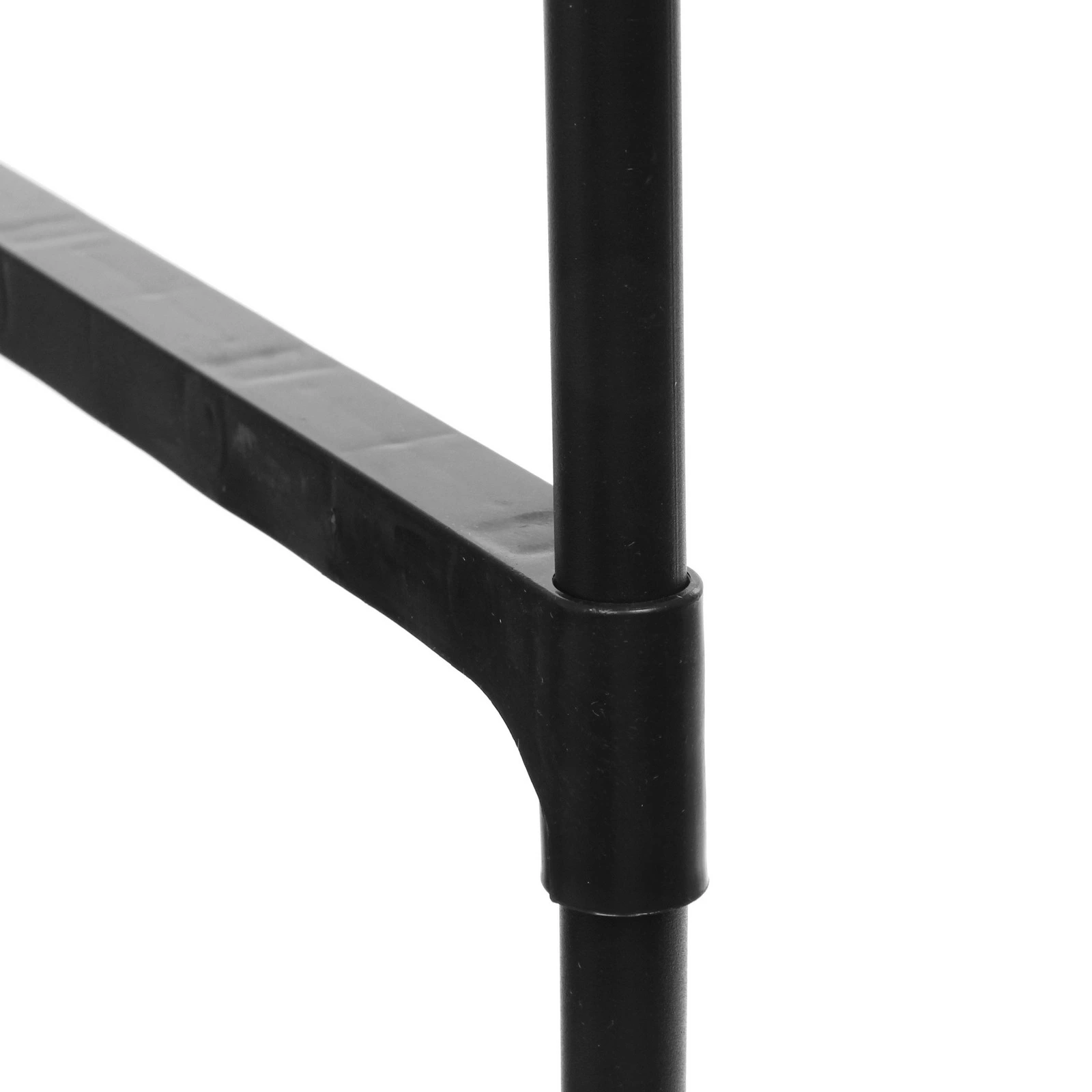 Вешалка выполнена в черном цвете, который легко сочетается с различными стилями интерьера — от классического до современного. Металлические перекладины обеспечивают надежность, а пластиковые элементы делают конструкцию легкой и удобной в эксплуатации. Это универсальный вариант для дома, съемной квартиры, общежития или офиса.