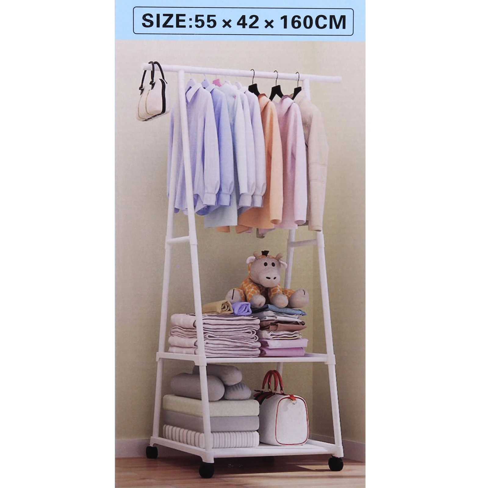- Верхняя металлическая перекладина подходит для размещения плечиков с одеждой.