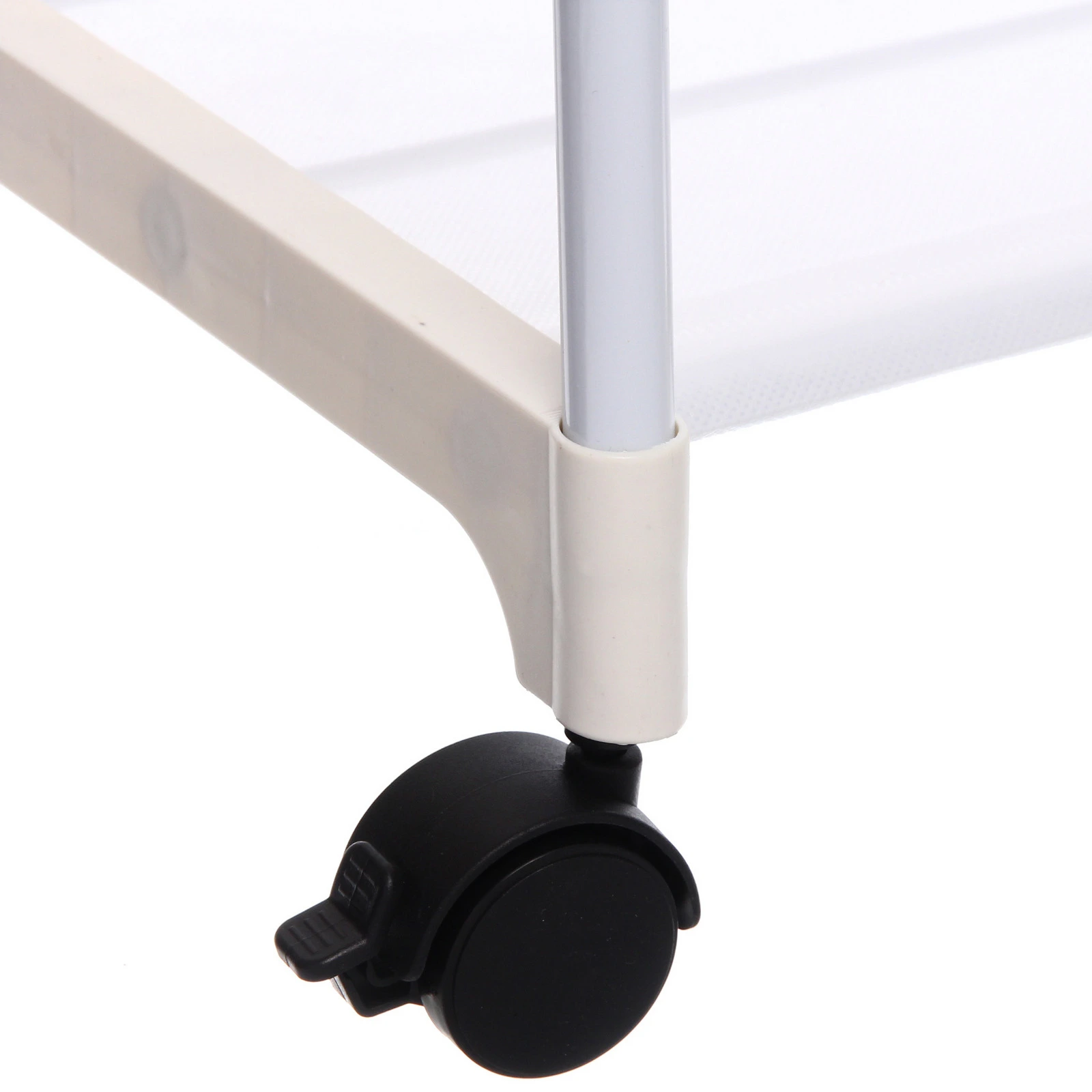 - Тормозной механизм на колёсах помогает зафиксировать вешалку в нужном месте.