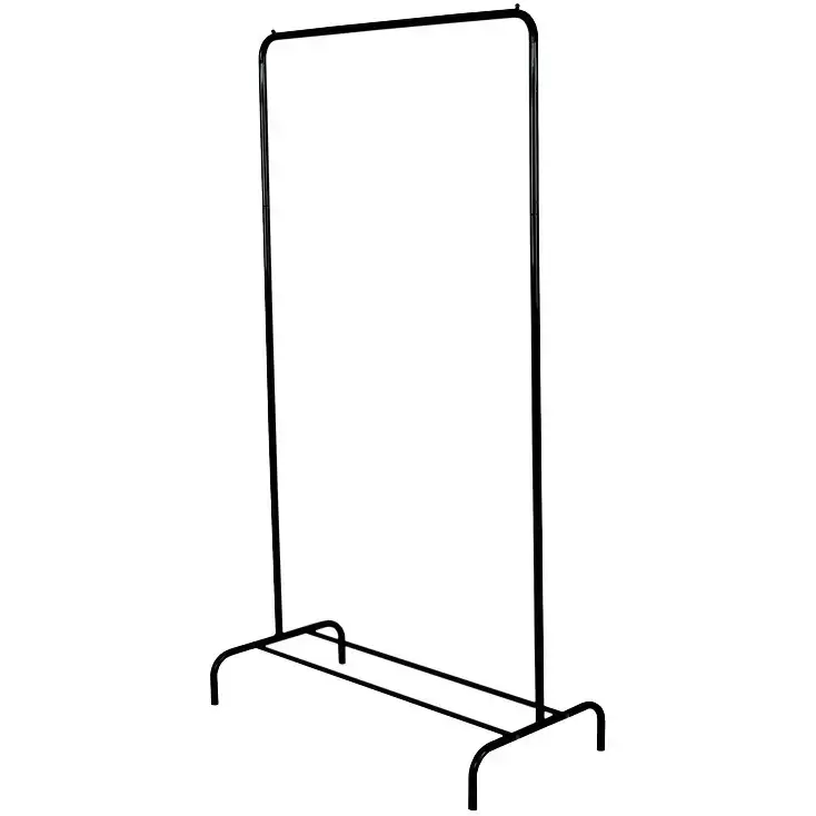 Вешалка изготовлена из прочного металла, что гарантирует её долговечность и надежность. Простая конструкция с двумя вертикальными стойками и горизонтальной перекладиной обеспечивает устойчивость и легкость в использовании. Вы сможете легко повесить и снять одежду, не беспокоясь о том, что вешалка может упасть или сломаться.