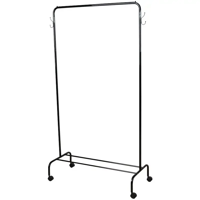 Вешалка выполнена из прочного металла, что гарантирует её долговечность. Размеры 90х39х155 см позволяют разместить достаточное количество одежды, не занимая при этом много места. Чёрный цвет придаёт вешалке элегантный вид, а простота конструкции делает её легкой в сборке и использовании.
