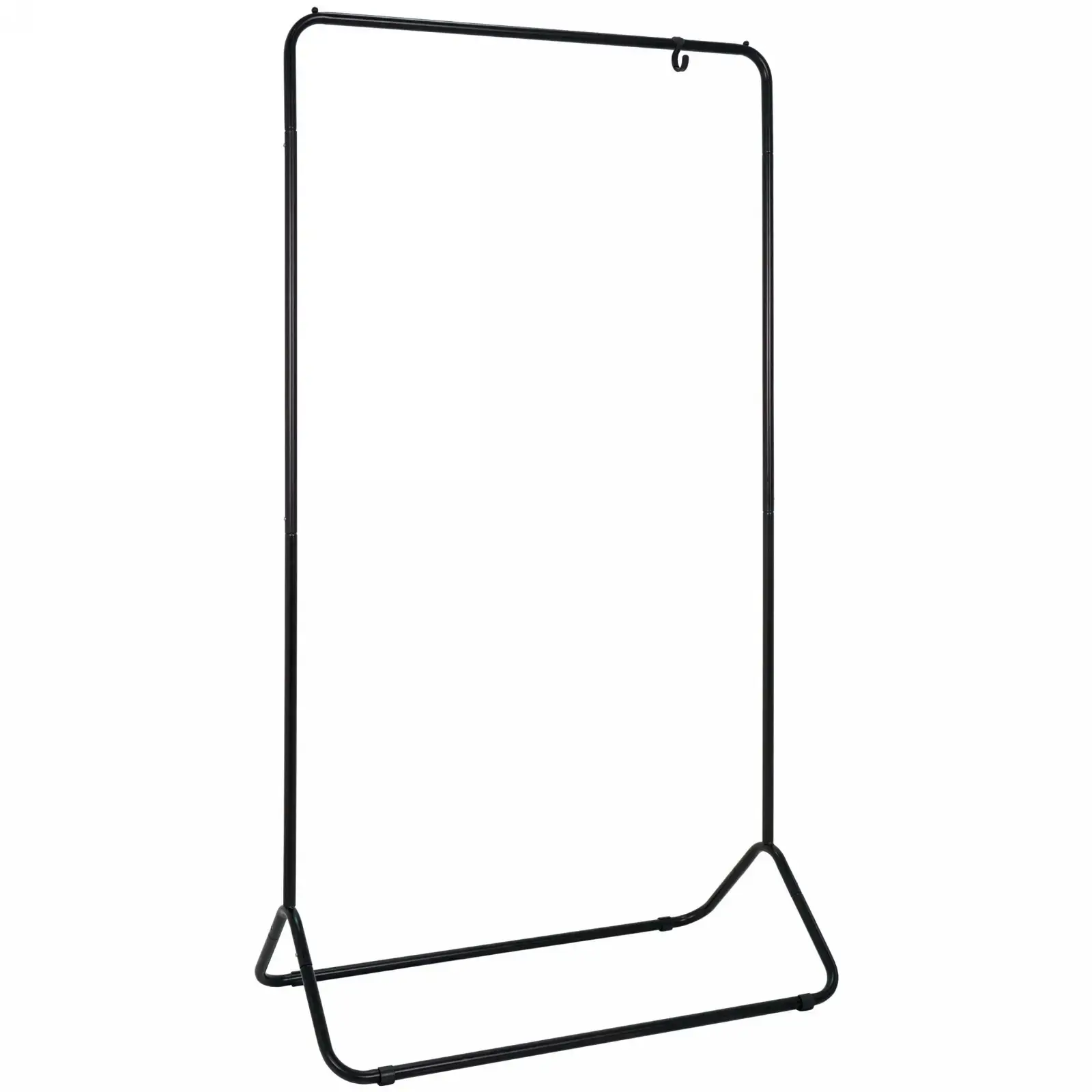 Вешалка имеет прямоугольную форму с двумя вертикальными опорами и поперечной перекладиной, что позволяет удобно развешивать одежду. Крюки в верхней части конструкции обеспечивают легкий доступ к вещам. Размеры вешалки 82,5 см в высоту, 42 см в ширину и 150 см в длину делают её идеальным выбором для любого помещения.
