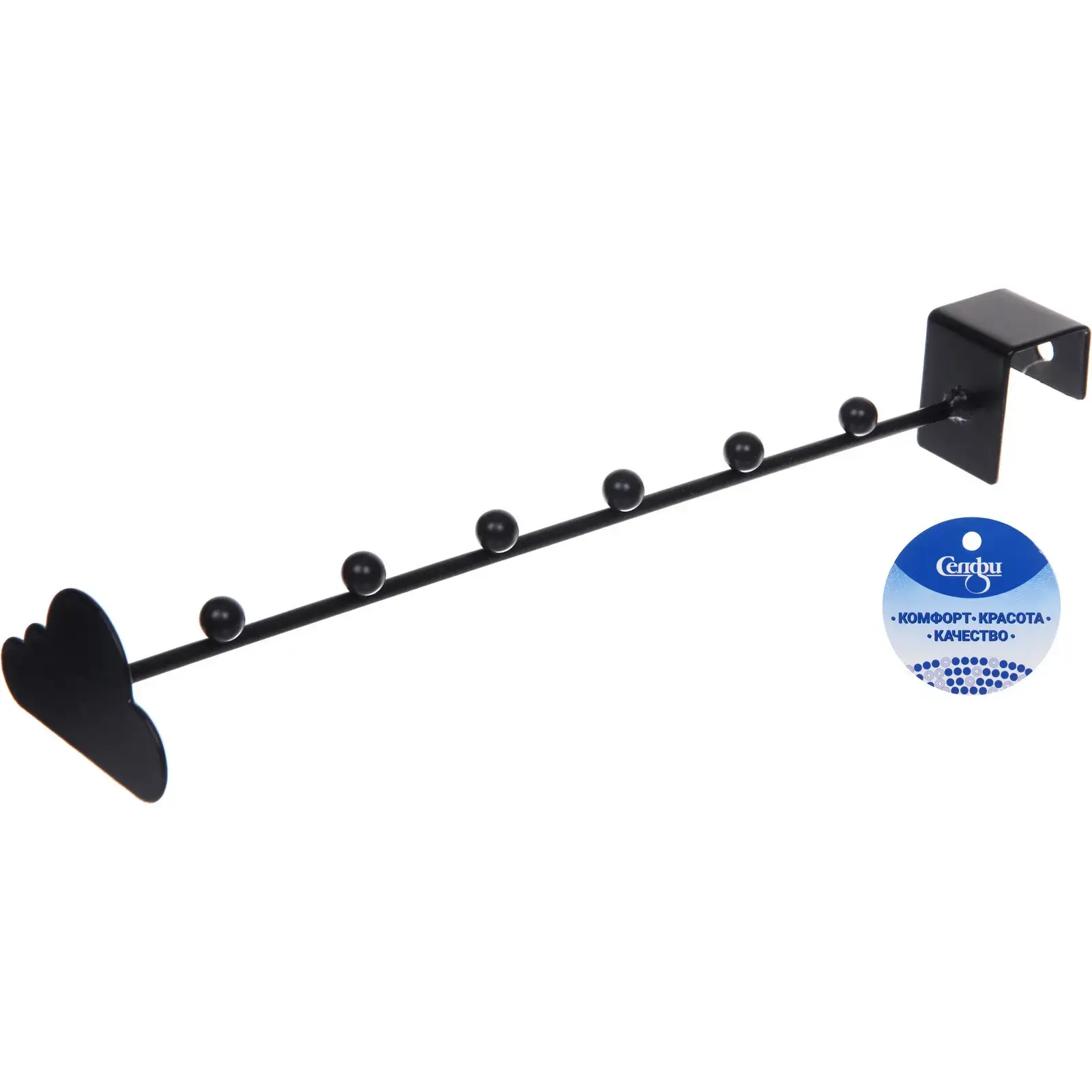 Вешалка выполнена из качественного металла, что гарантирует её прочность и устойчивость к повреждениям. Черный цвет делает её универсальной и подходящей для любого стиля интерьера. Размеры вешалки составляют 27 см в длину, 6.1 см в ширину и 3.6 см в высоту, что делает её компактной и удобной в использовании.