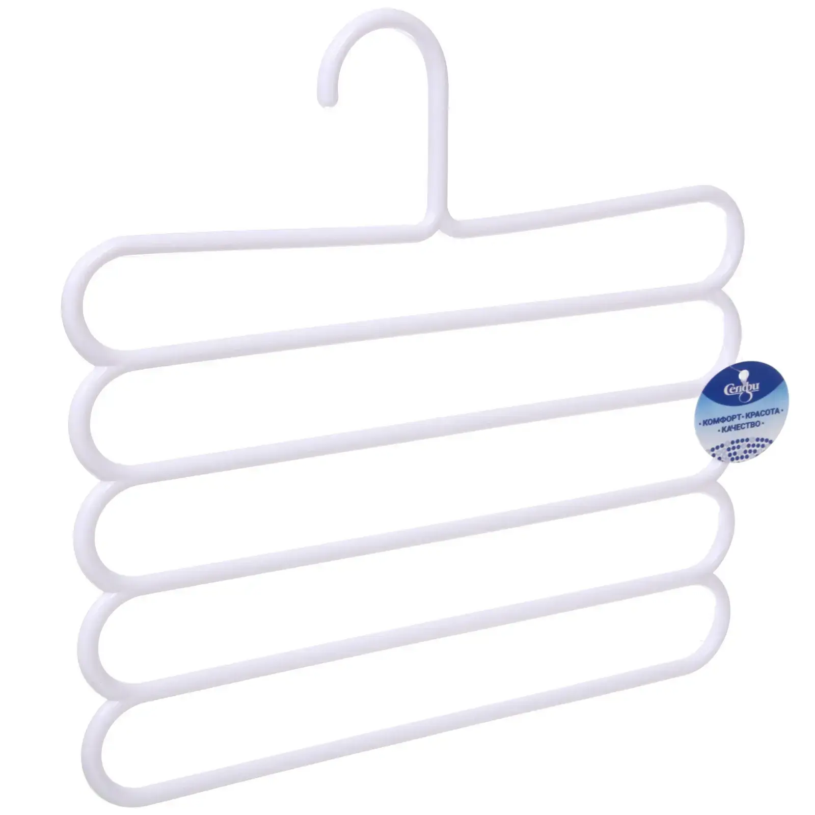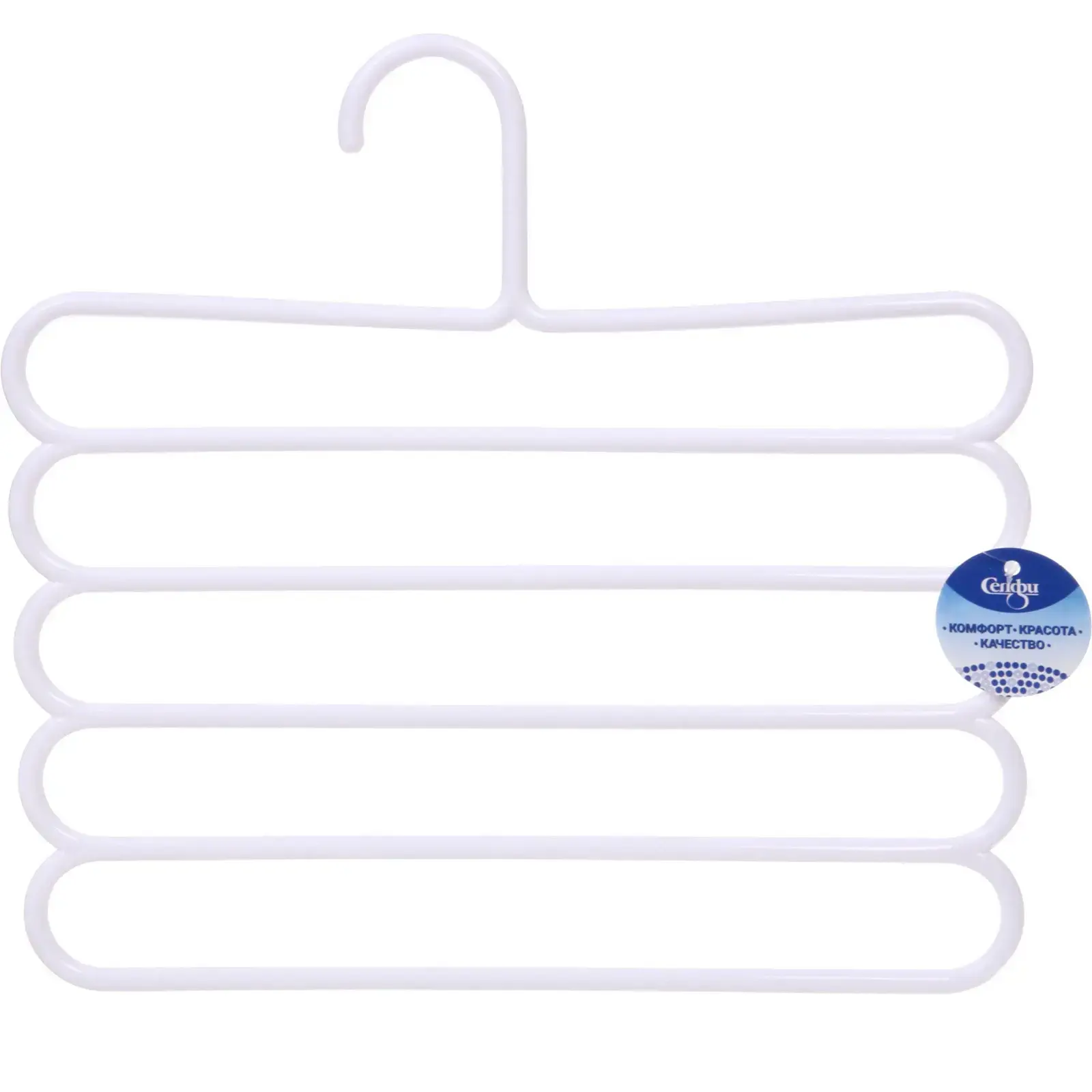 Эта вешалка предназначена для удобного размещения одежды. С пятью горизонтальными перекладинами вы сможете разместить множество вещей, экономя пространство в вашем шкафу или прихожей. Она идеально подходит для использования в домашних условиях, а также в офисах и магазинах.