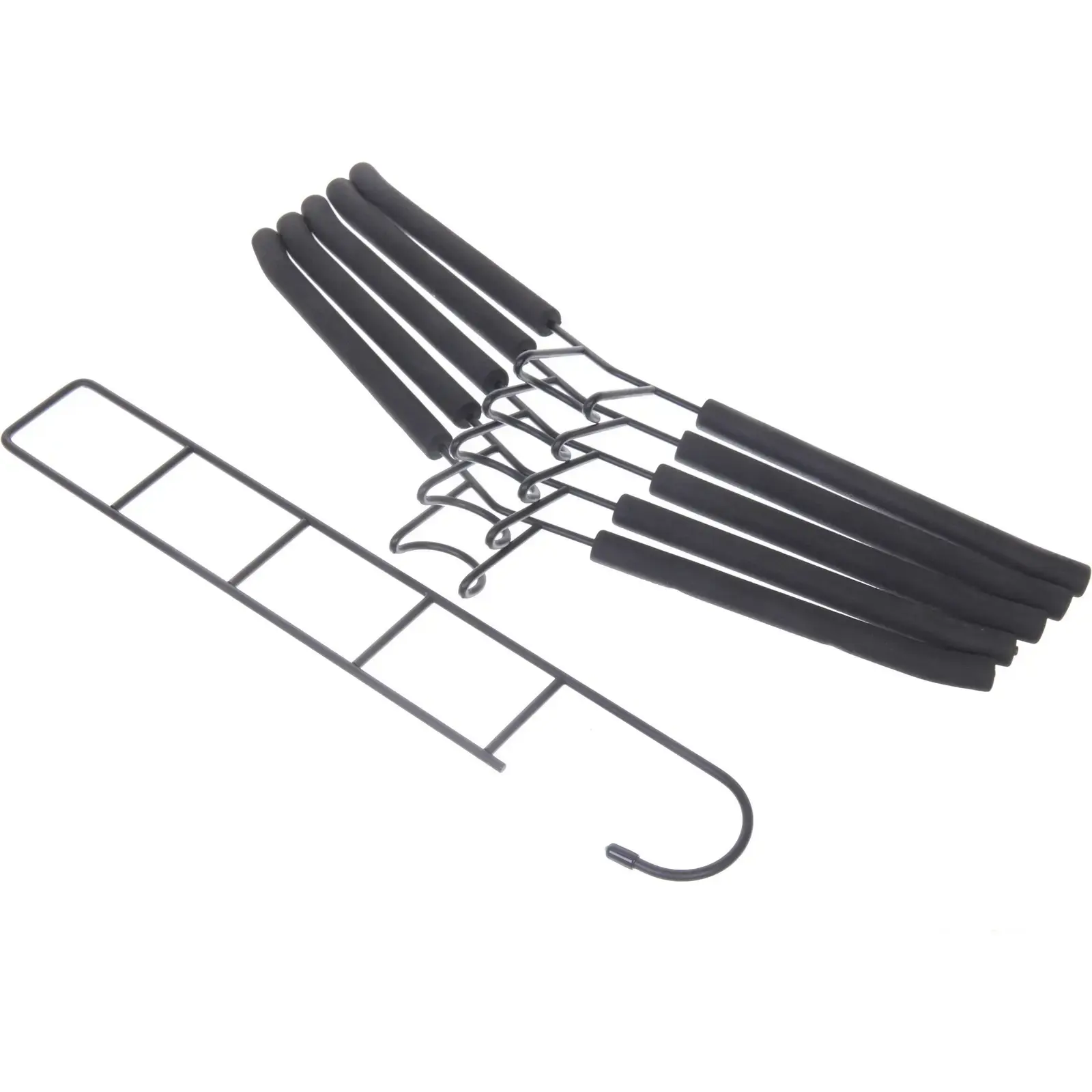 Вешалка выполнена из прочного металла, что гарантирует её долговечность. Чёрный цвет и современный дизайн делают её универсальной для любого стиля интерьера. Размеры вешалки позволяют удобно разместить её в любом шкафу или на вешалке, а также легко перемещать при необходимости.