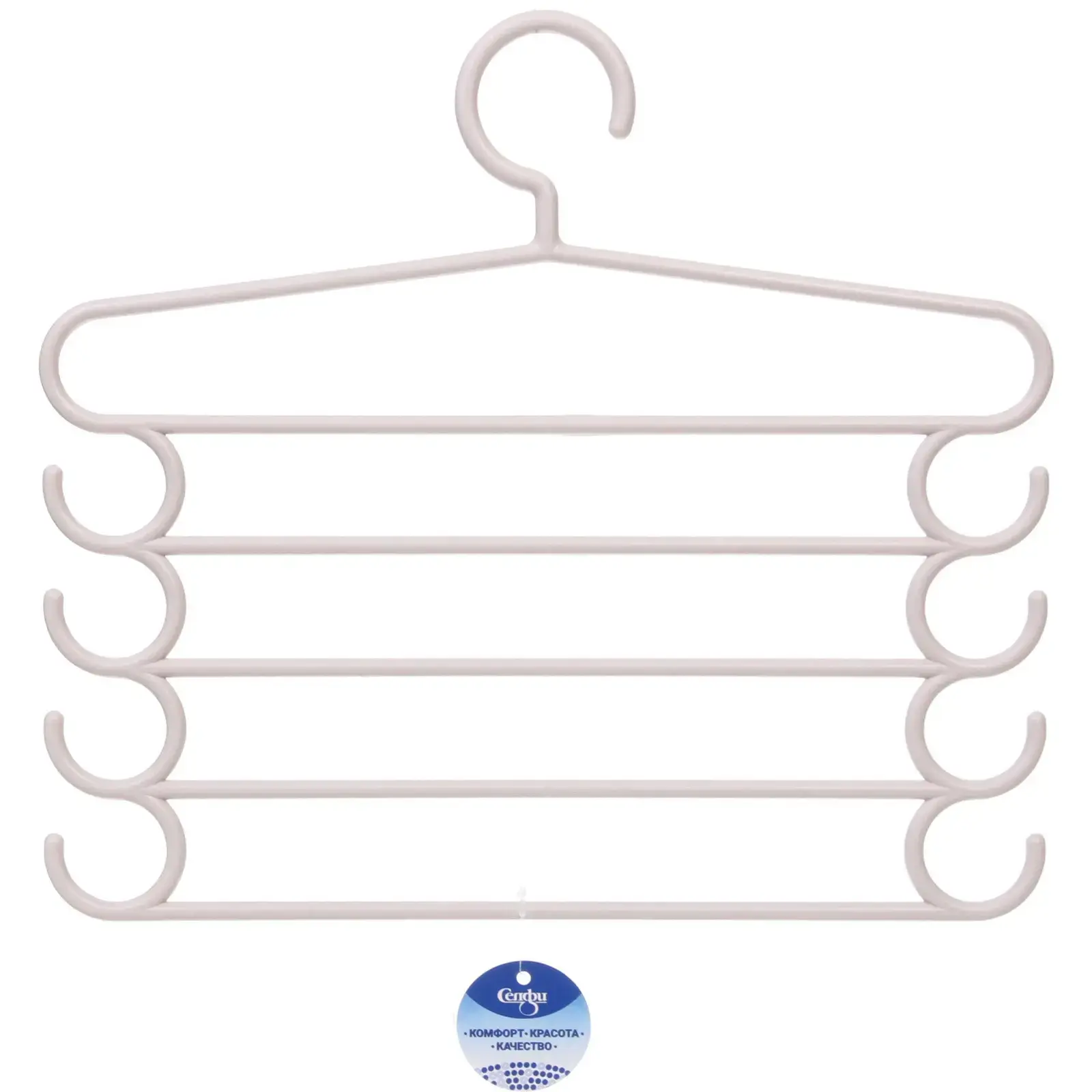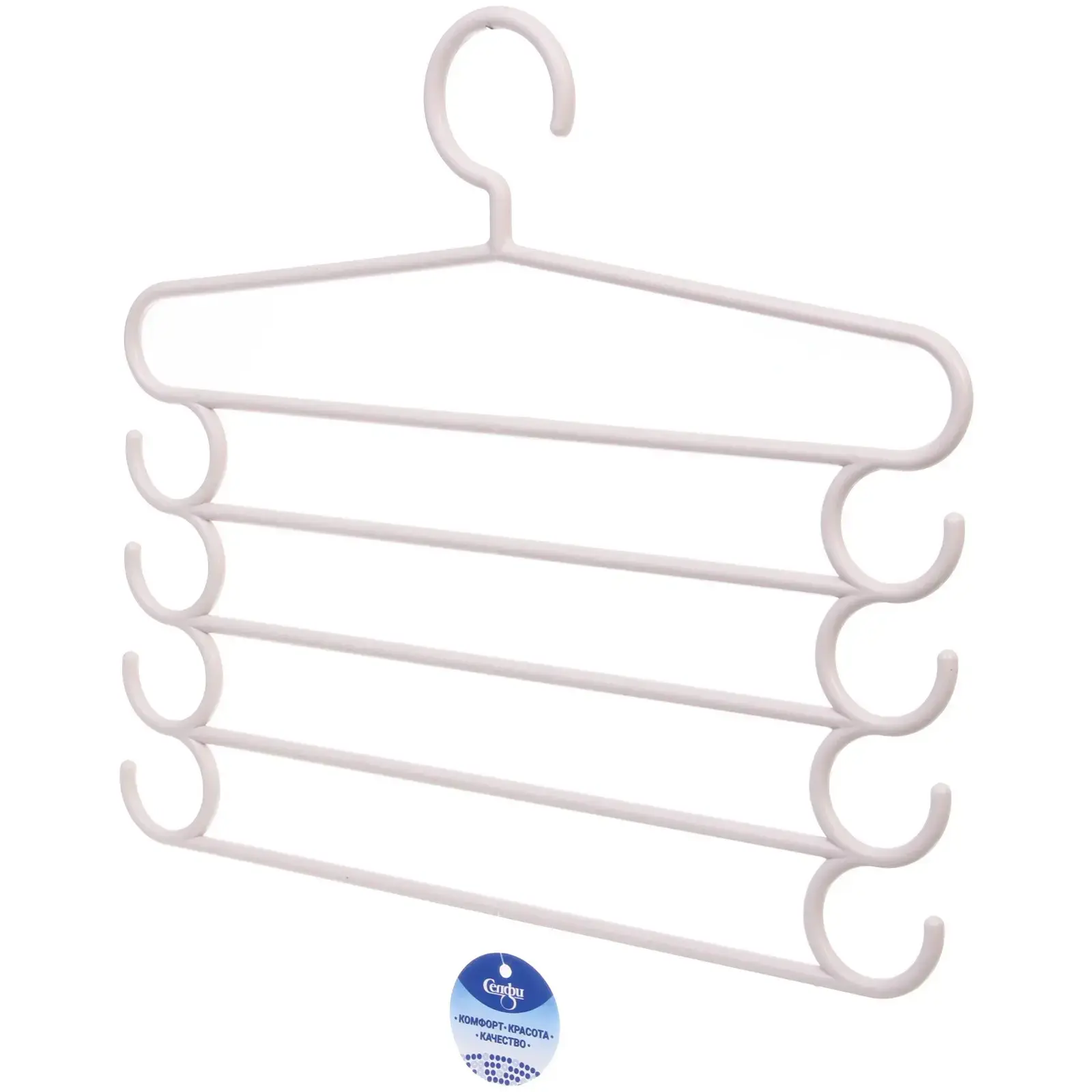 Вешалка оснащена пятью горизонтальными перекладинами, что позволяет удобно размещать одежду. Благодаря подвесному крючку, вы можете легко повесить её на кронштейн или в шкафу. Это делает вешалку универсальным аксессуаром для любого помещения — будь то прихожая, спальня или гардеробная.