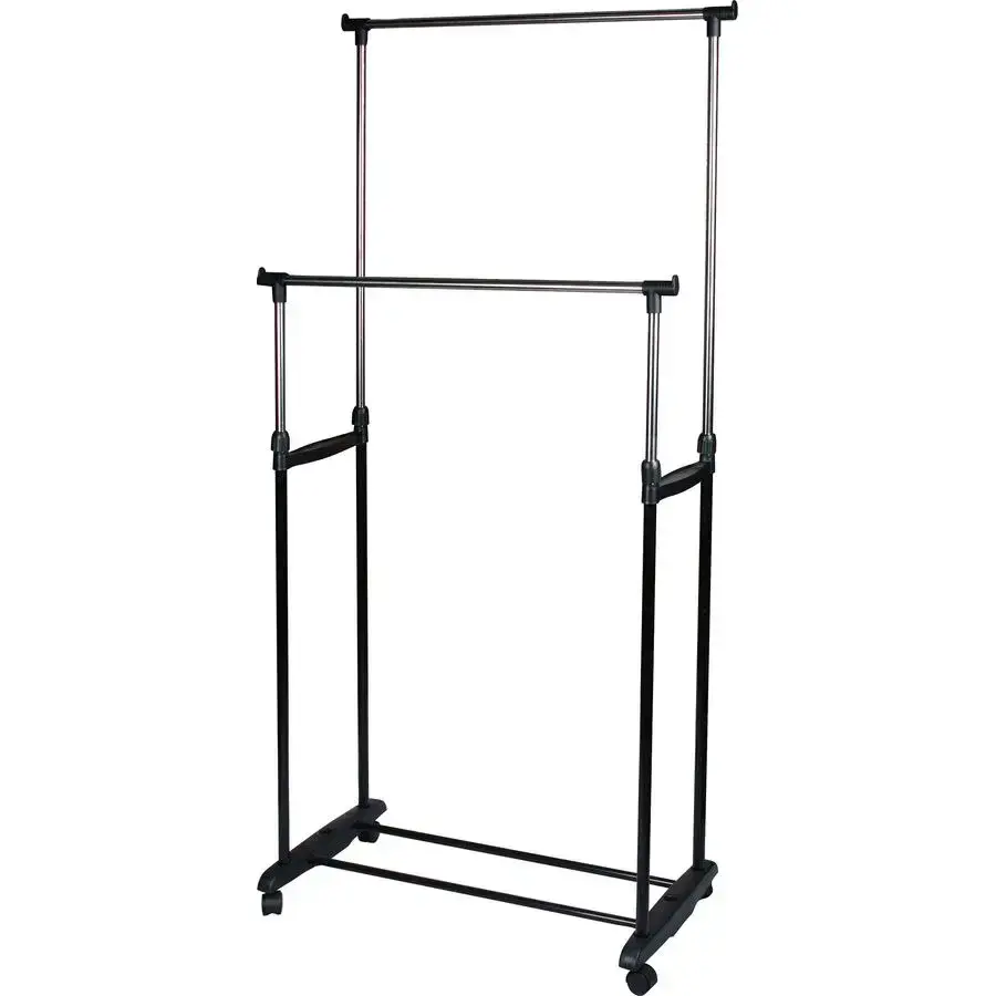 Вешалка напольная на колесах, 2 перекладины, 78*42*93*168 см, черный/металл
