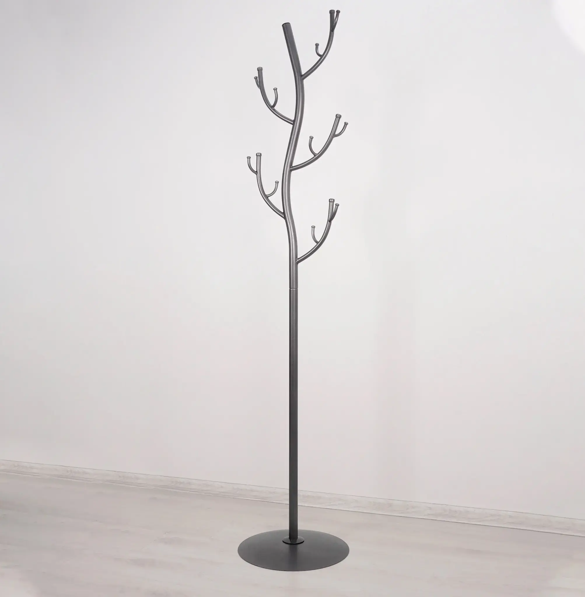 Выбирая вешалку «Дерево», вы получаете долговечный и надежный продукт. Каркас из стали с полимерно-порошковым покрытием обеспечивает прочность и устойчивость конструкции, которая выдерживает до 45 кг одежды. Основание в виде диска увеличивает устойчивость изделия, что делает его безопасным для использования в любых условиях. Эстетичный графитовый цвет вешалки легко впишется в любой интерьер, а её оригинальная форма в виде дерева добавит нотку креативности.