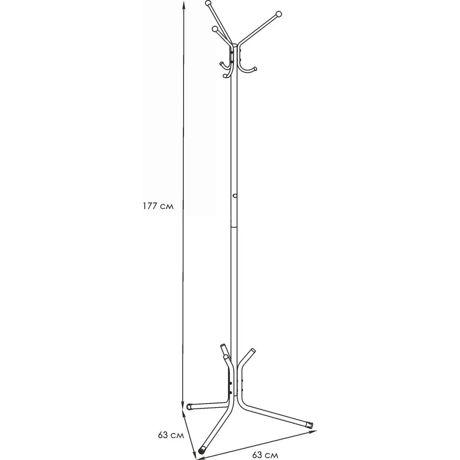 Высота вешалки составляет 177 см, а ширина основания — 63 см, что обеспечивает её стабильность. Изготовленная из качественного металла, она обладает прочной и надежной конструкцией. Вешалка доступна в трех популярных цветах: белое серебро, медный антик и черный, что позволяет выбрать вариант, который лучше всего подойдет вашему интерьеру.