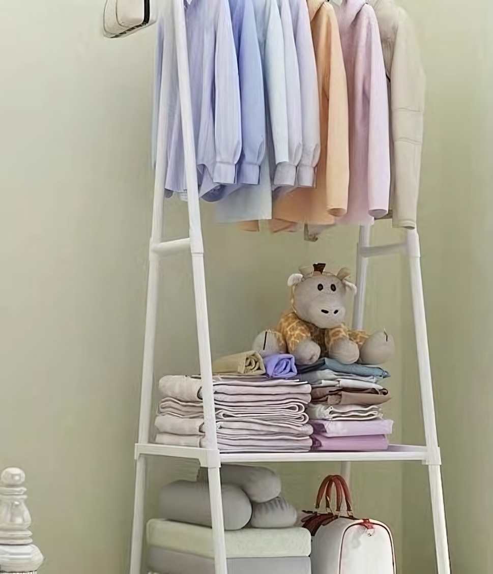 Мобильная вешалка с полками для удобного хранения одежды и текстиля