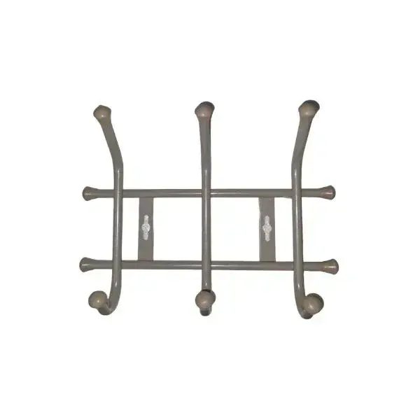 Конструкция из металла с антикоррозийным покрытием. Расстояние между крючками 22 см оптимально для размещения объемных вещей. Монтажная планка скрывает крепежные элементы, создавая аккуратный внешний вид.