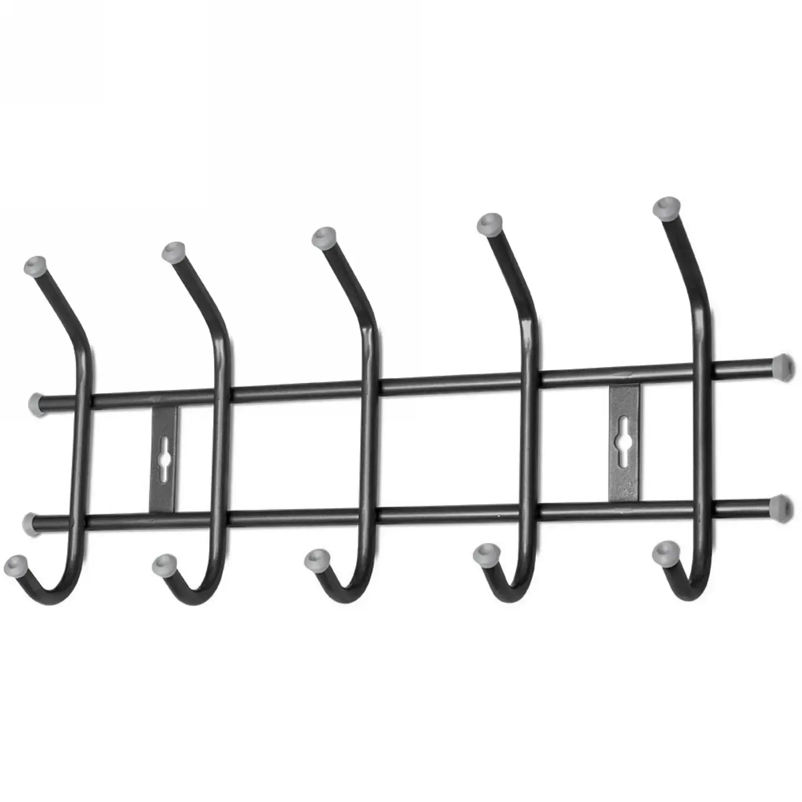 Вешалка легко крепится к стене с помощью двух монтажных отверстий, что обеспечивает её надежную фиксацию. Каждый крючок завершается резиновым или пластиковым наконечником светлого цвета, что предотвращает повреждение одежды и добавляет дополнительный комфорт в использовании.