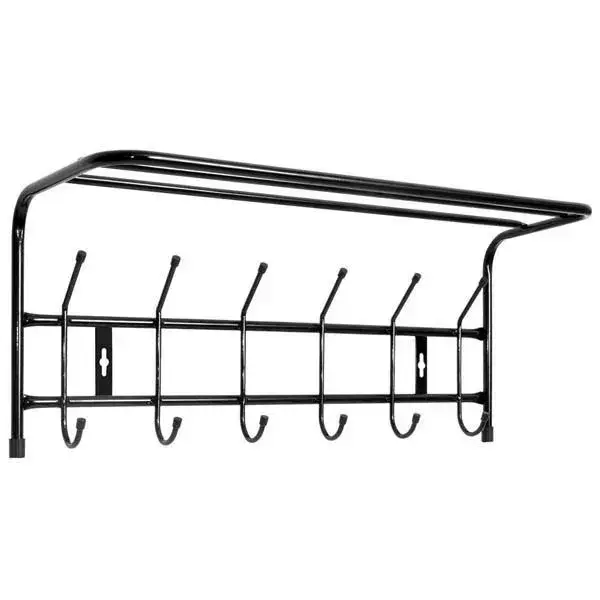 Вешалка настенная с 6 крючками и полкой, металл, черный цвет, компактная организация пространства