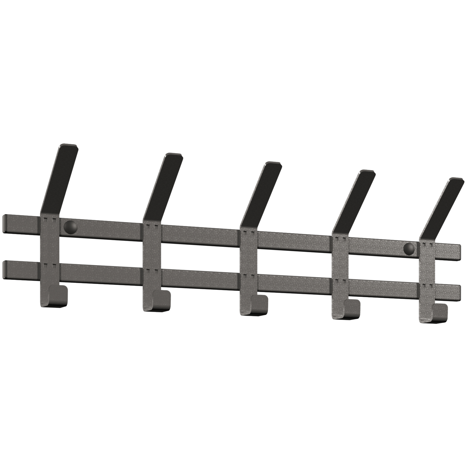 Вешалка имеет прямоугольную форму и выполнена в графитовом цвете, что делает ее универсальной для любого интерьера. Каждый из 5 крючков имеет наклонённую форму, что обеспечивает удобство в использовании. Размеры вешалки не указаны, но она достаточно компактна, чтобы не занимать много места, при этом оставаясь функциональной. Установите вешалку «ТОРОНТО 5» в своем доме и наслаждайтесь комфортом и порядком!