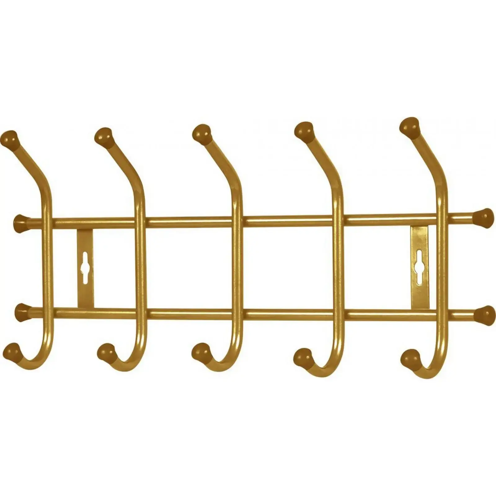 Вешалка настенная металлическая, 5 крючков, золотой цвет, для прихожей