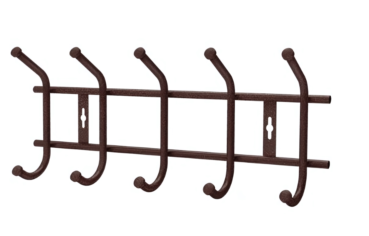 Установка проста — два отверстия для крепления входящих в комплект элементов позволяют быстро зафиксировать вешалку и сразу начать использовать. Подходит для использования как в жилых, так и коммерческих целях, а классическая цветовая гамма темно-коричневого или черного делает изделие универсальным и вписывающимся в любой интерьер.