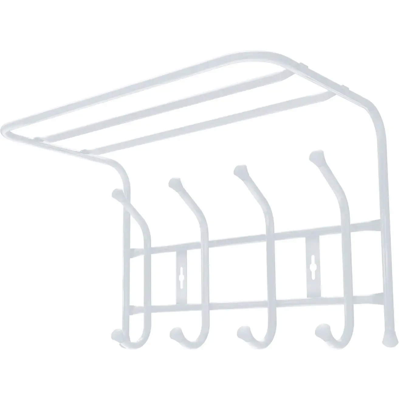 Вешалка оснащена четырьмя прочными крючками, которые позволяют удобно развешивать верхнюю одежду, сумки или полотенца. Максимальная нагрузка на каждый крючок составляет 5 кг, что делает её надежным помощником в быту. Установка вешалки не требует специальных навыков — достаточно прикрепить её к стене с помощью двух крепежных элементов, которые идут в комплекте.