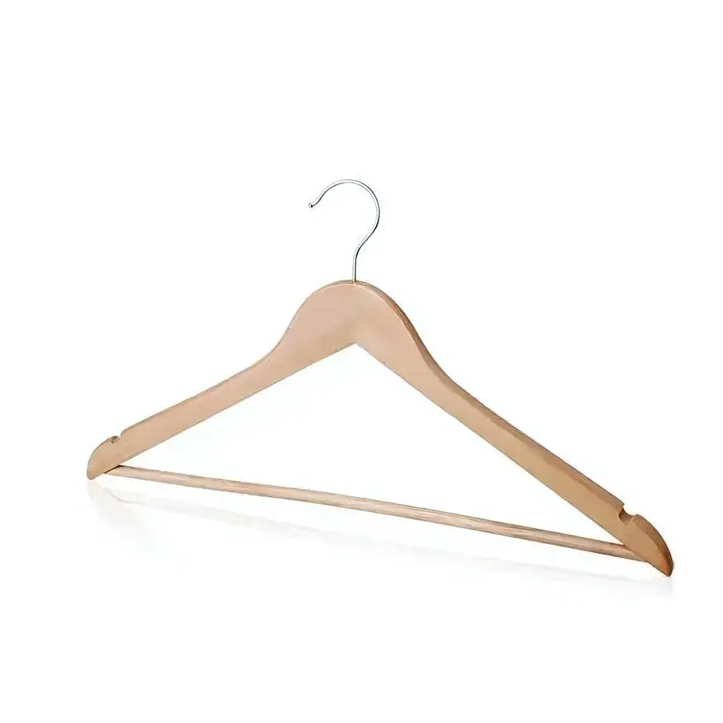 Вешалка-плечики деревянная «Р8031S», светлая, металл. крючок, поперечина для брюк