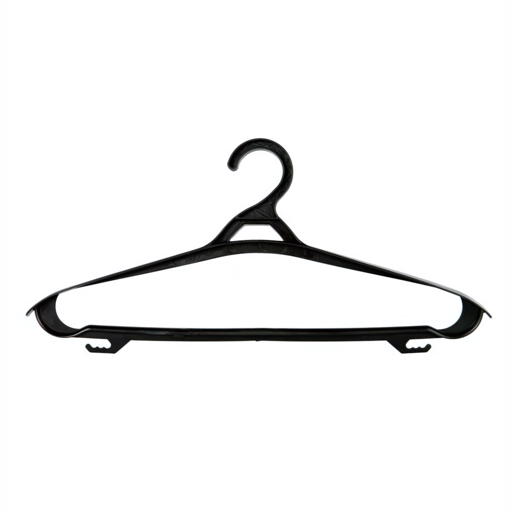 Вешалка имеет классическую треугольную форму с плавно изогнутыми плечиками, которые повторяют естественные линии плеч. Закругленные утолщенные концы предотвращают соскальзывание одежды и не оставляют следов на деликатных тканях. Центральный крюк с усиленной перемычкой обеспечивает надежное крепление на перекладине шкафа.