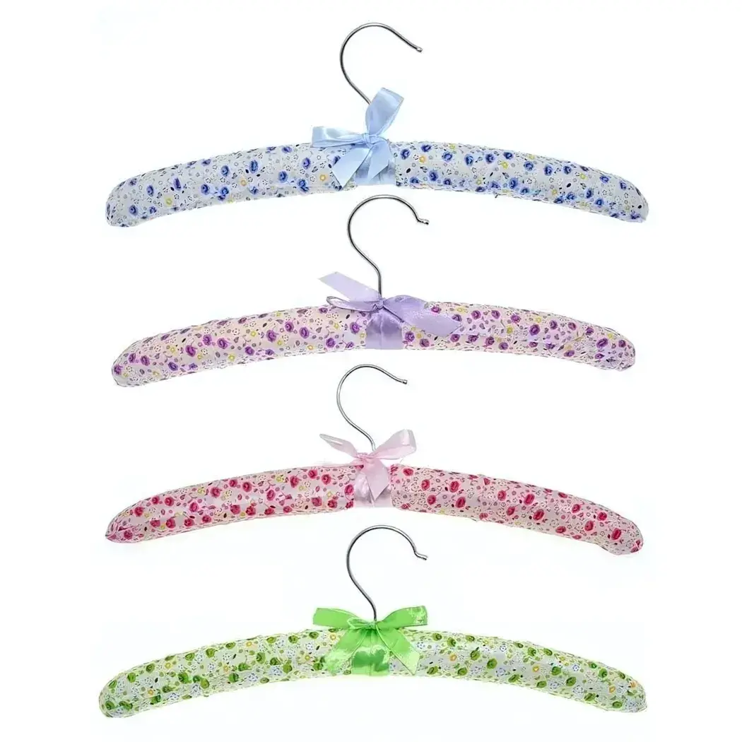 Текстильные вешалки с деликатным бантиком сохранят форму ваших платьев, блузок и костюмов. Мягкая обивка предотвращает появление заломов на ткани, а четыре пастельных оттенка гармонично впишутся в интерьер гардероба.