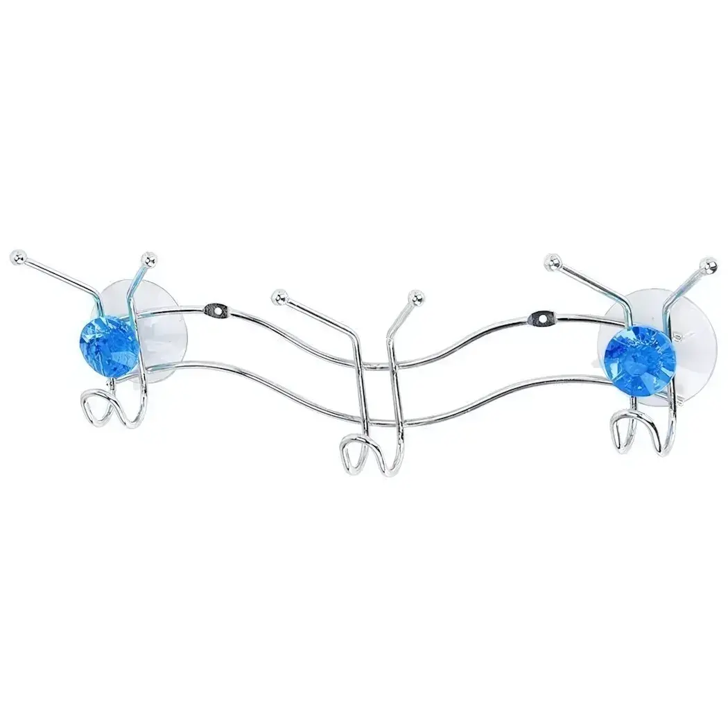 Вешалка настенная с 3 крючками на присосках, цвет синий бриллиант, модель W4220А
