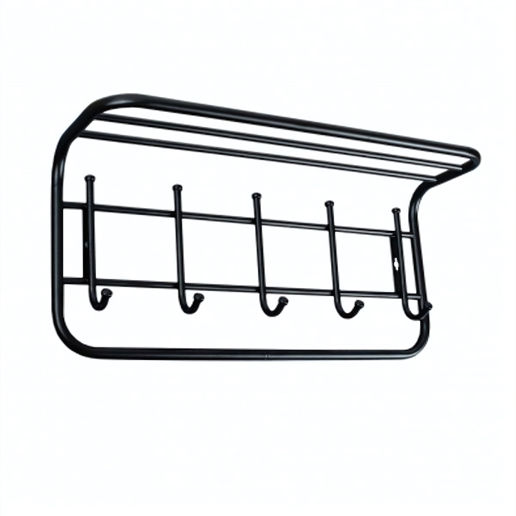 Настенная вешалка с полкой помогает поддерживать порядок в прихожей, экономя пространство и время на поиски нужных вещей. Компактная конструкция сочетает крючки для верхней одежды и практичную верхнюю полку для головных уборов и аксессуаров, создавая аккуратную и организованную зону хранения.