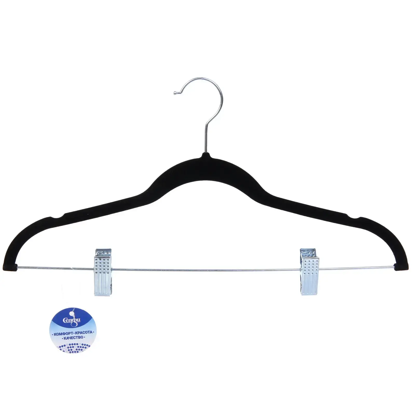 Вешалка оснащена двумя металлическими зажимами с антискользящей поверхностью, которые надежно фиксируют одежду, предотвращая ее соскальзывание. Поворотный крючок позволяет легко повесить вешалку в любом удобном месте. Размеры вешалки составляют 42 см в ширину и 22.5 см в высоту, что делает ее универсальной для большинства типов одежды.