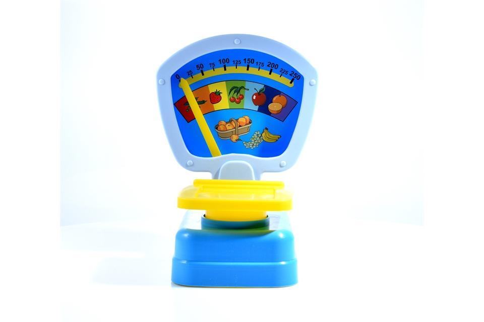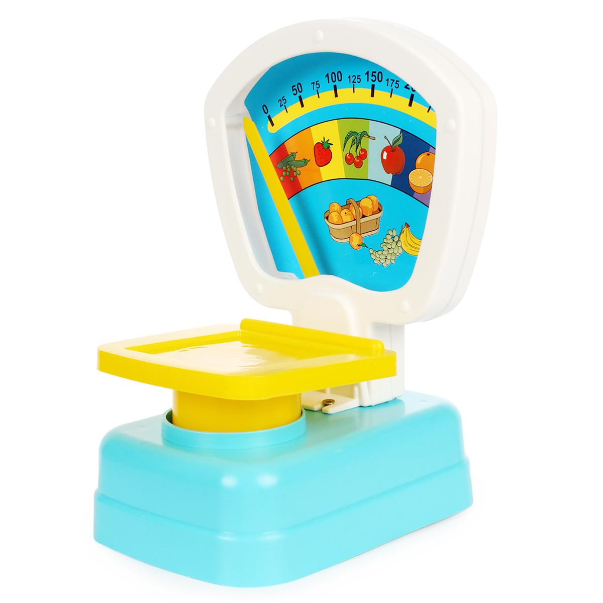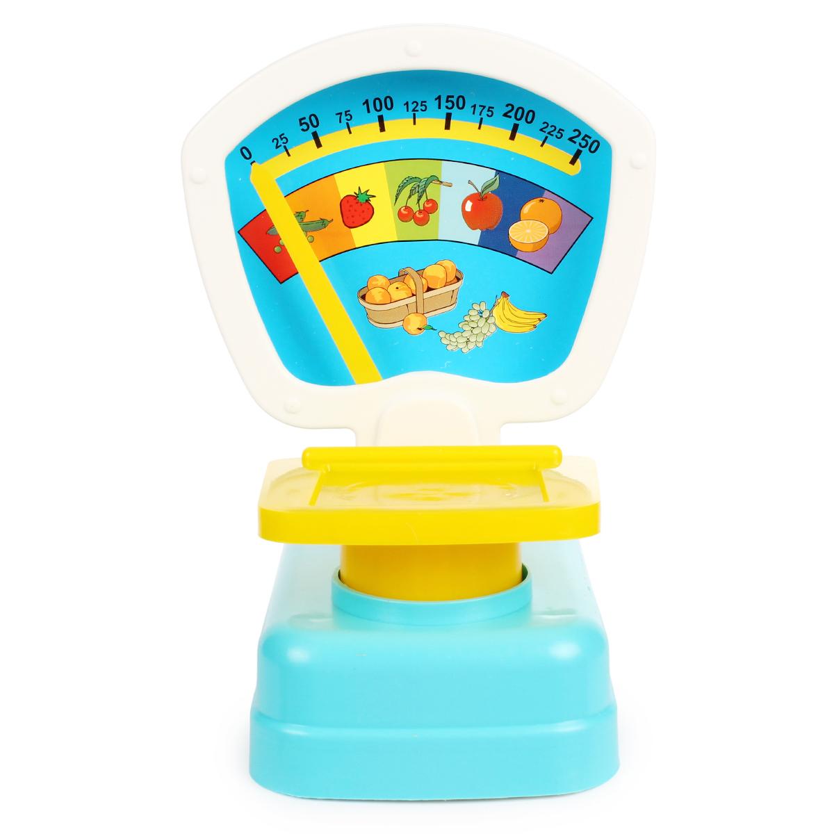 Игрушечные весы детские, цвет голубой/желтый, пластиковые с фруктовой шкалой