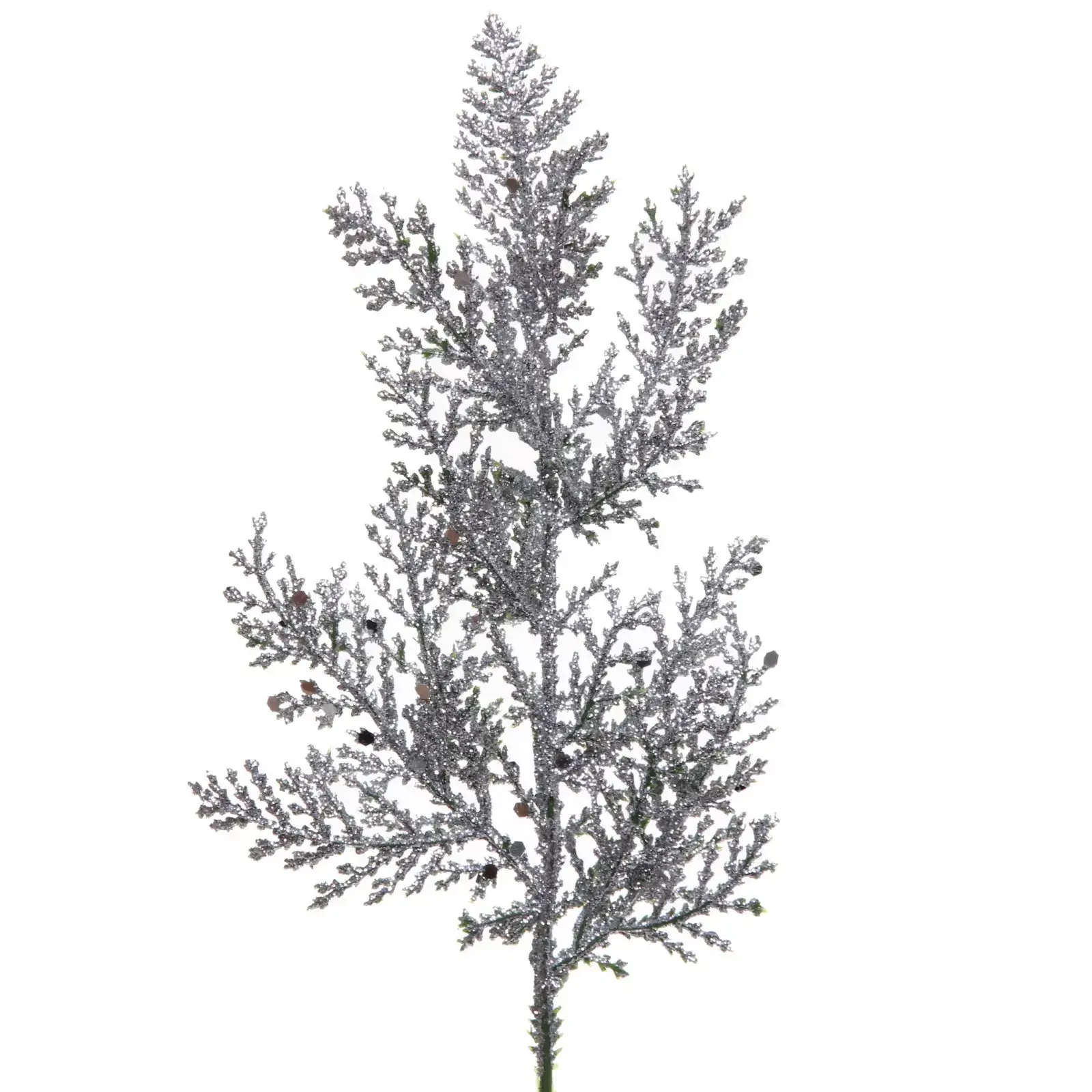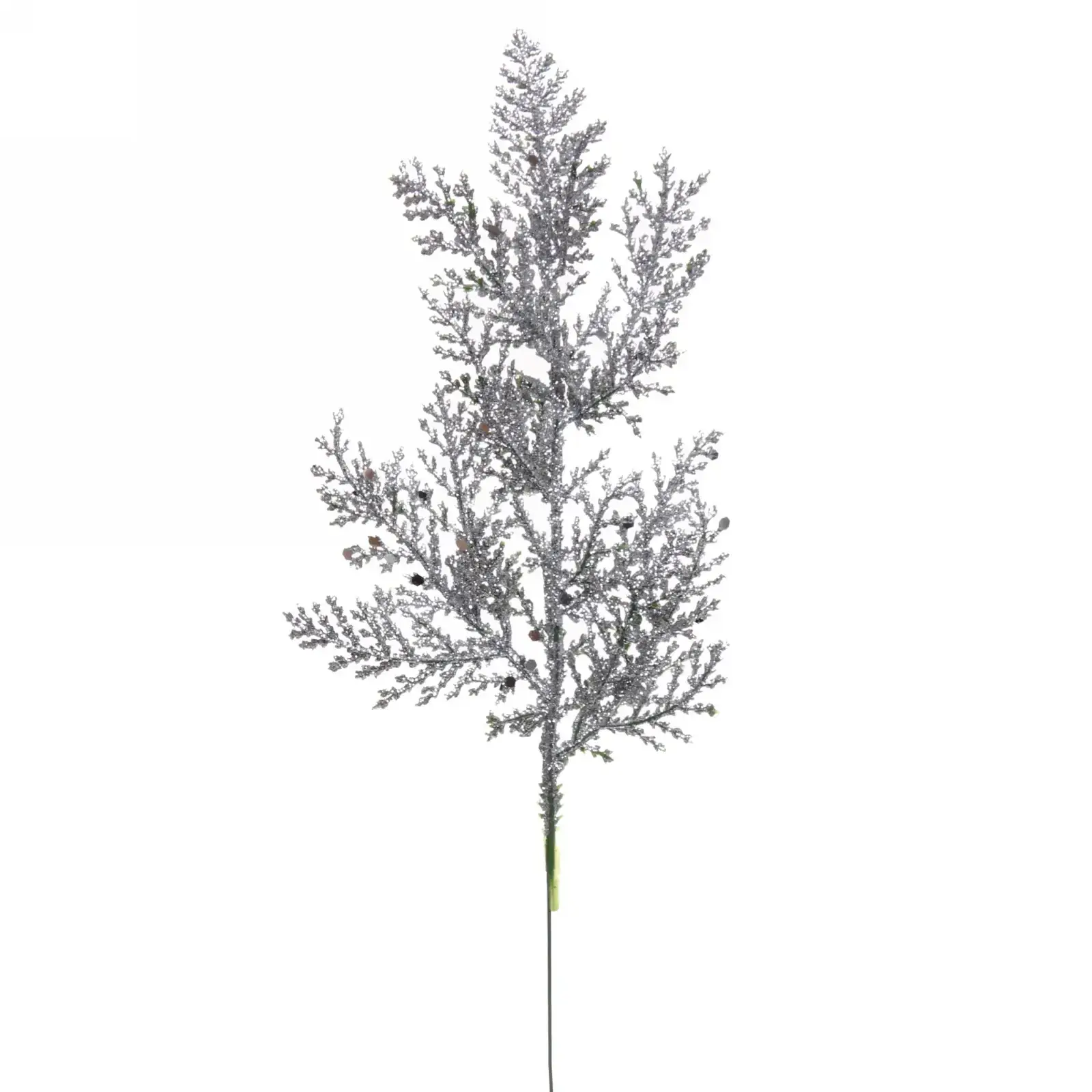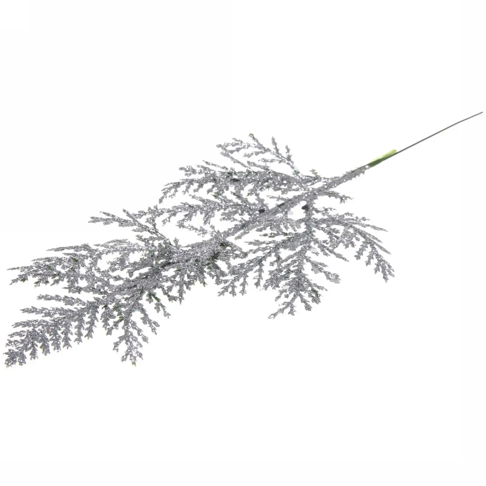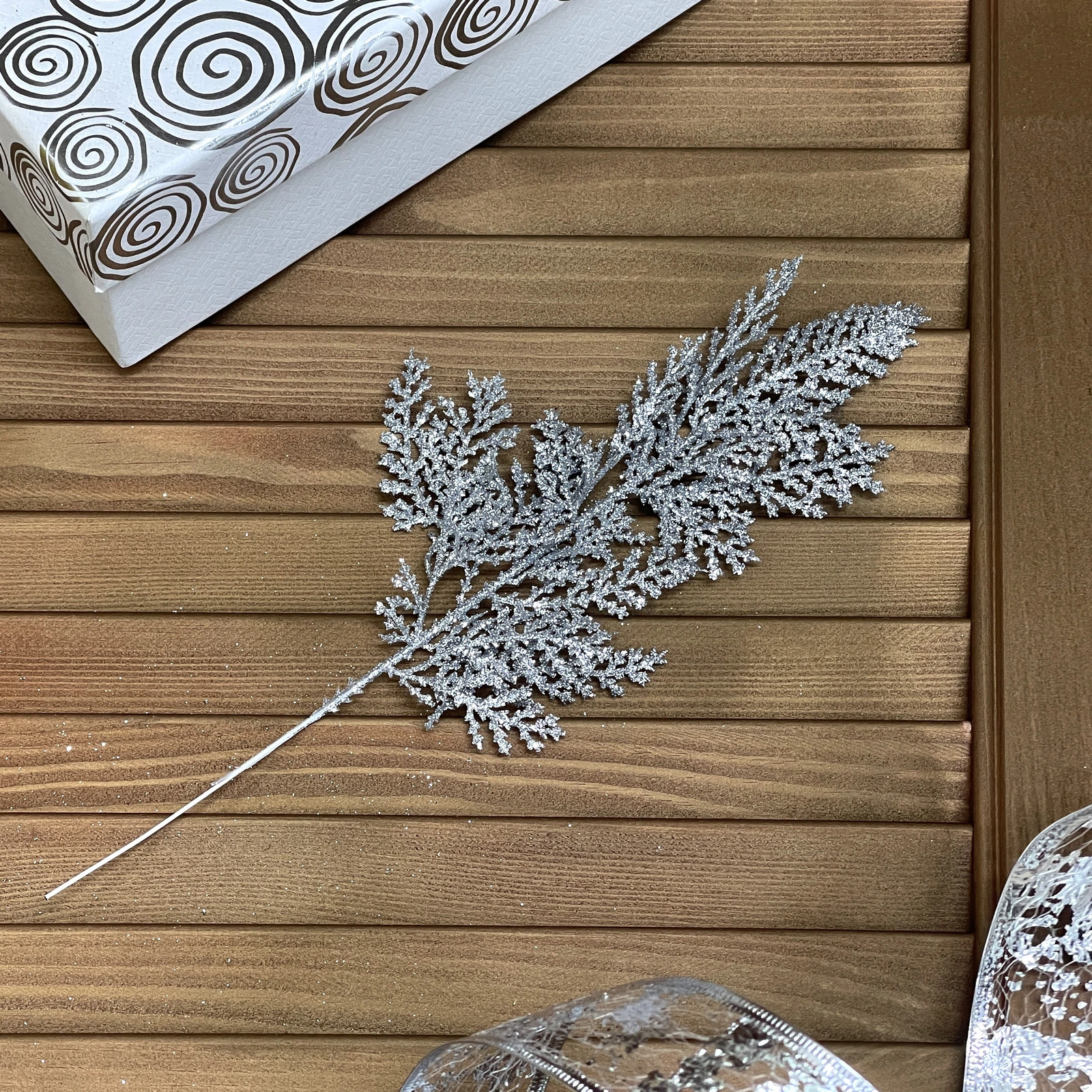 Ветка декоративная «Блеск», 25 см, серебро с блестками, пластик, праздничный декор