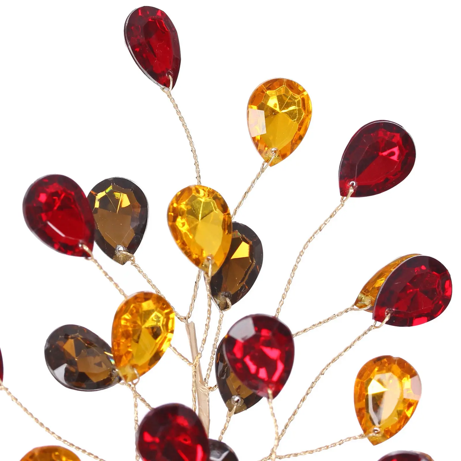 - Стильно оформленная ветка с яркими каплевидными камнями в красном, жёлтом и чёрном цветах.