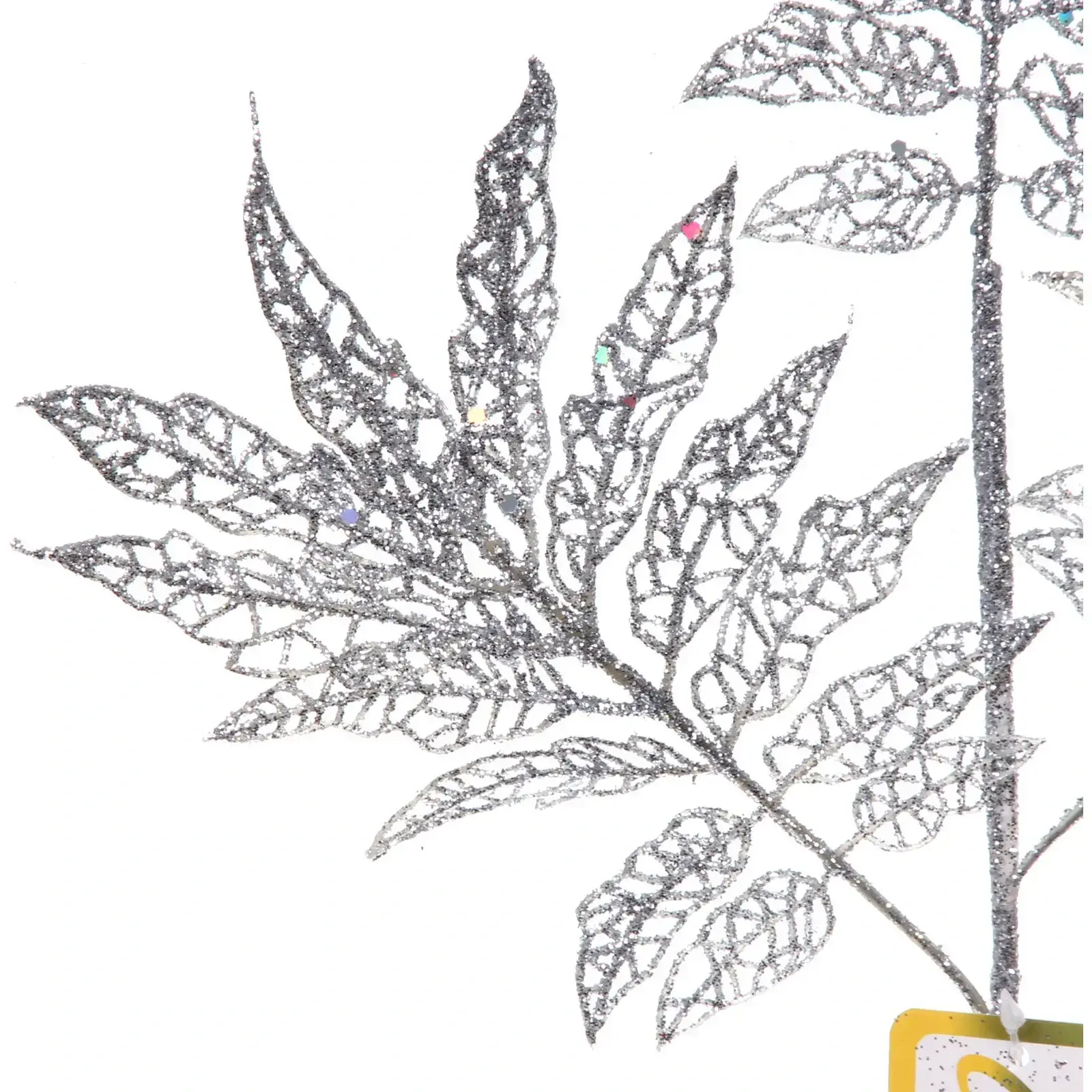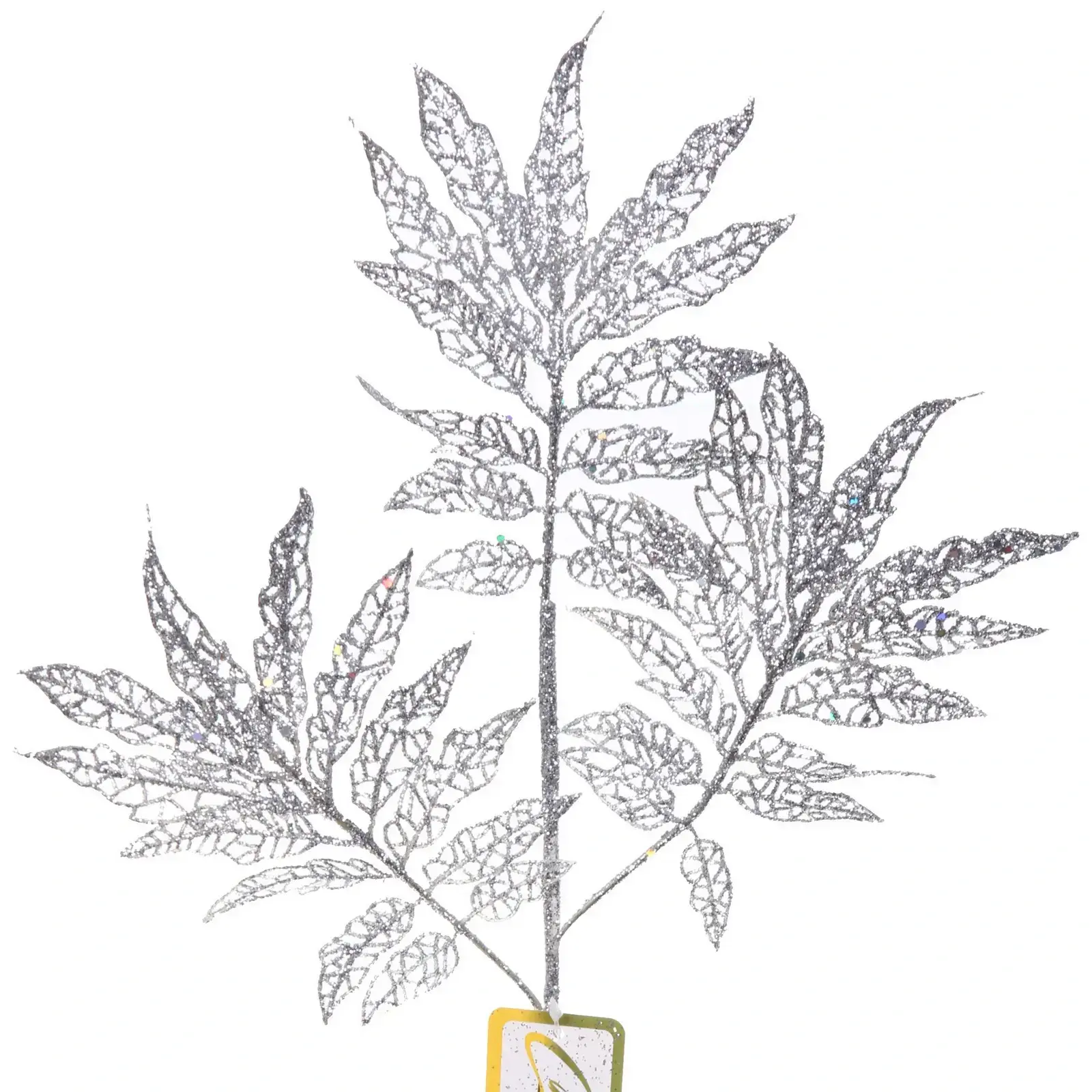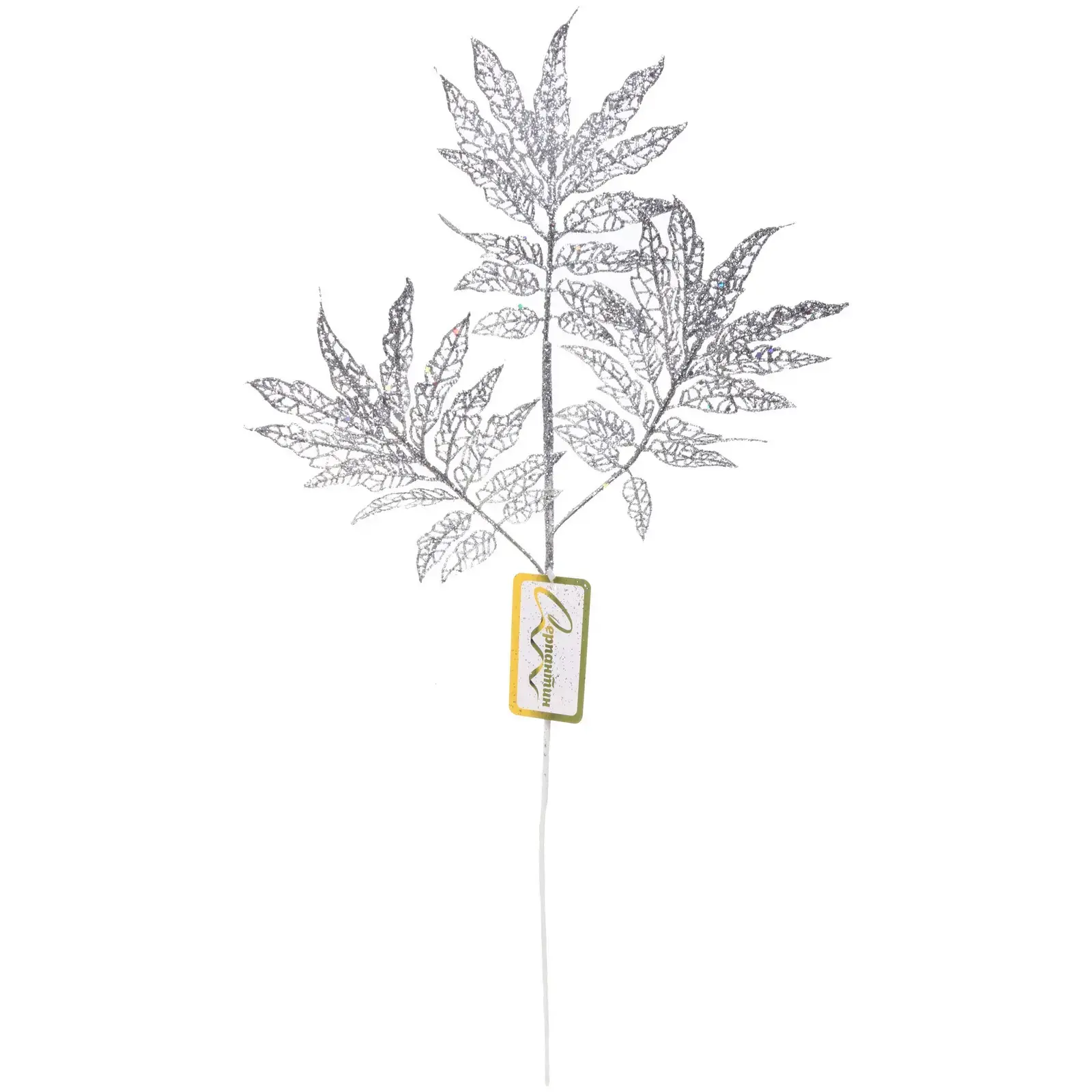 Ветка выполнена из пластика, что обеспечивает её легкость и прочность. Серебристый цвет с блестящим эффектом делает её универсальным элементом для любого стиля оформления. Размер ветки составляет 55 см, что позволяет использовать её в различных интерьере и для создания праздничных композиций.