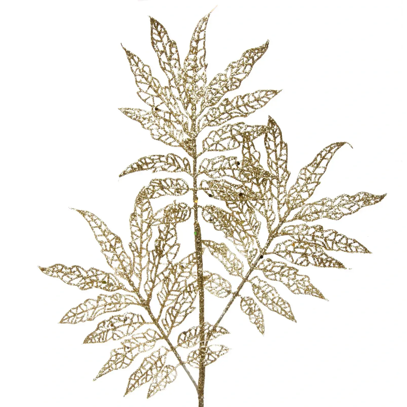 Длина ветки составляет 55 см, что делает ее удобной для размещения в вазах, композициях или как отдельный элемент декора. Ажурные листья с тонкими деталями придают ветке легкость и воздушность, создавая эффект натуральности. Используйте ветку для создания уникальных композиций и наслаждайтесь атмосферой праздника в вашем доме.