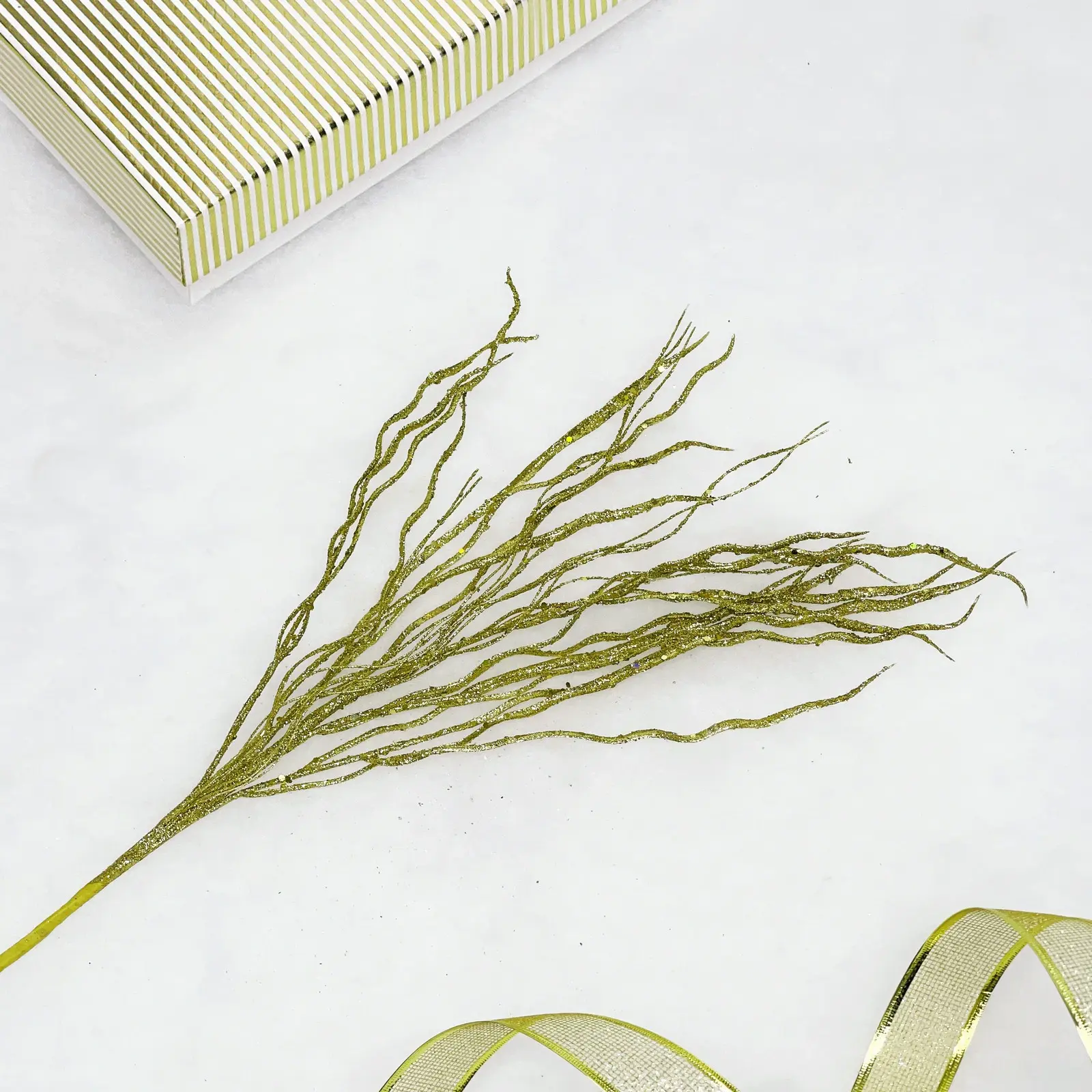 Создайте атмосферу праздника и роскоши благодаря декоративной ветке длиной 62 см. Золотистый цвет с мерцающими блестками добавит изысканности вашему декору.
