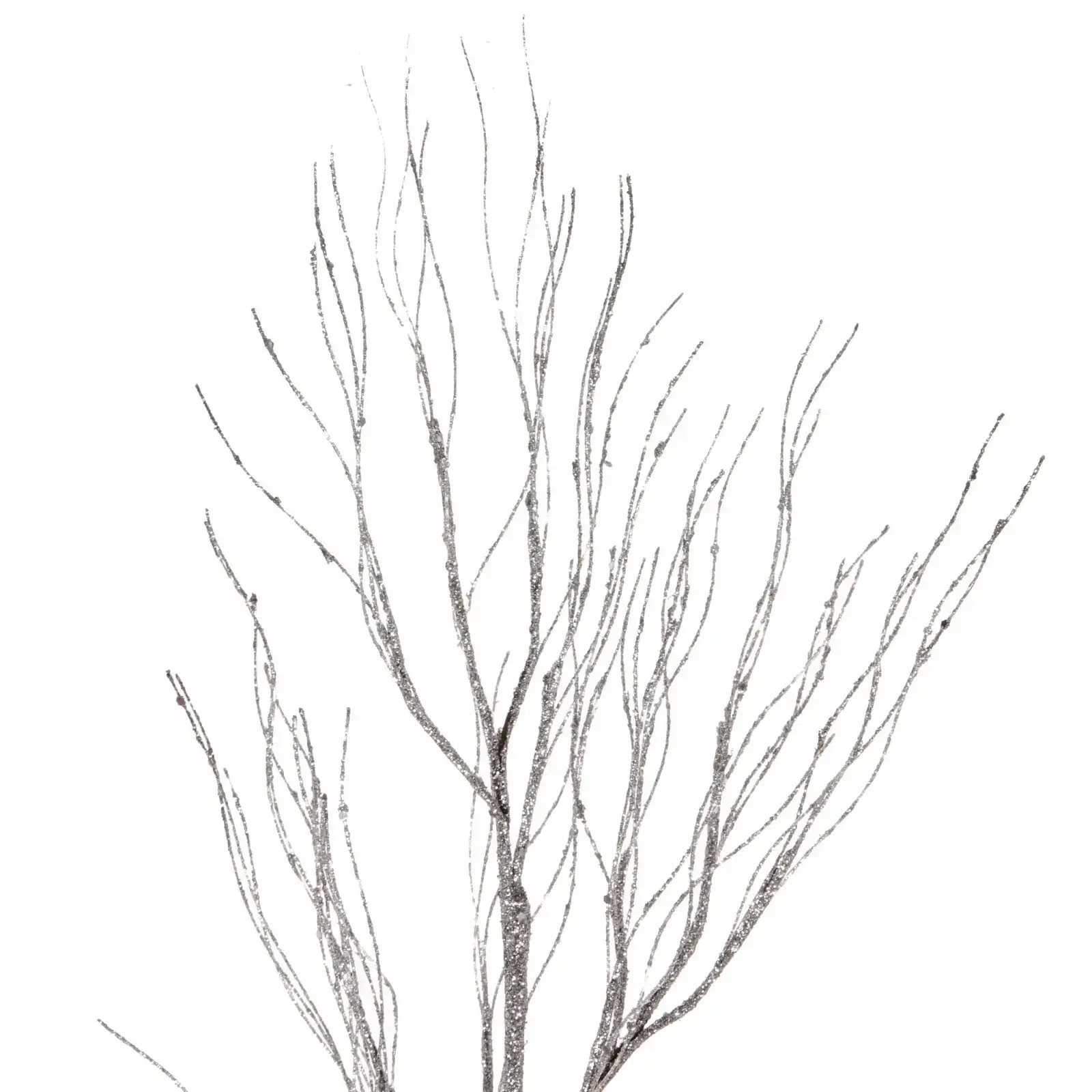 Длина ветки составляет 77 см, что делает ее универсальным элементом для различных стилей оформления. Серебристый цвет легко вписывается в любые цветовые решения, а легкий и воздушный дизайн позволяет использовать ветку как в одиночных композициях, так и в сочетании с другими декоративными элементами.