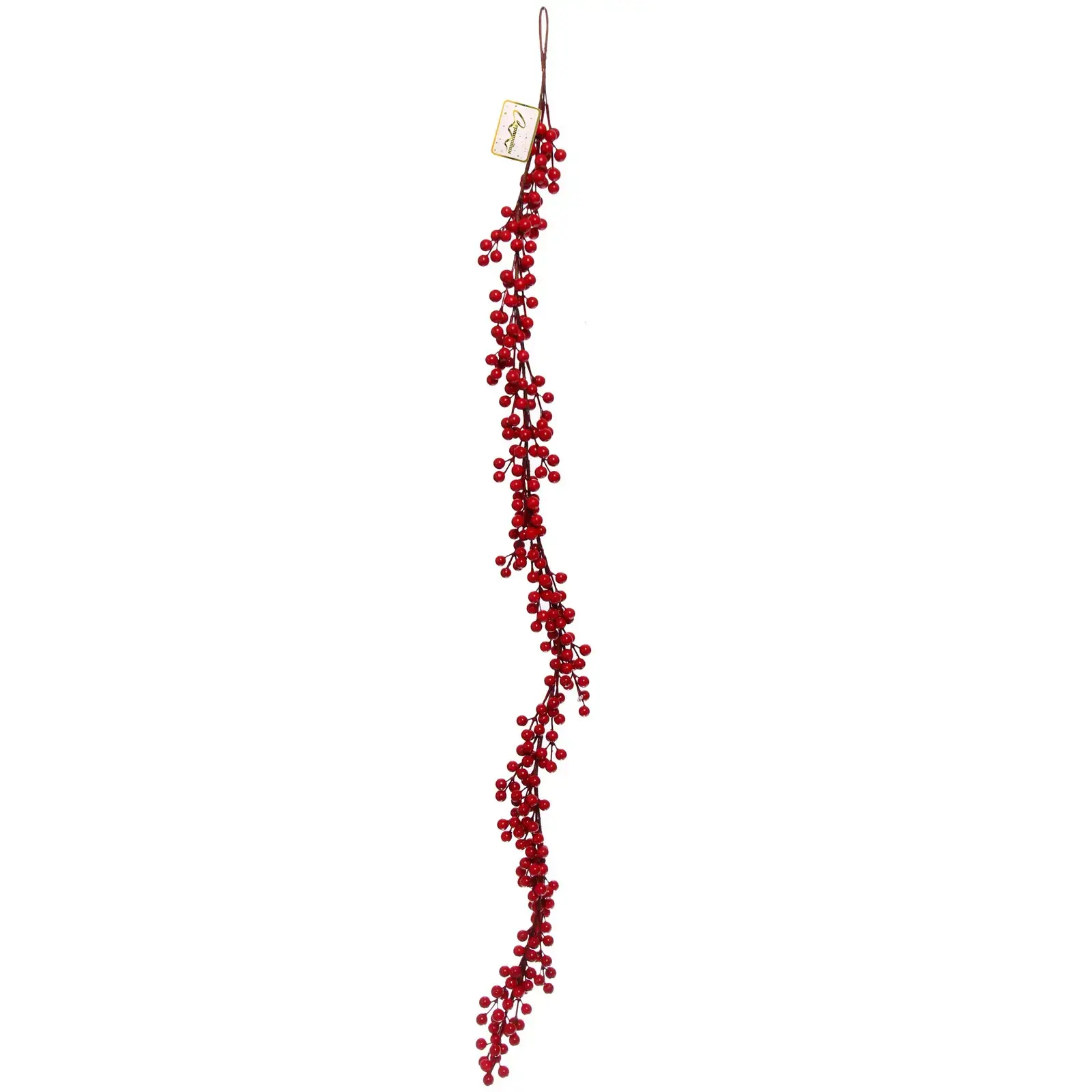 Общая длина ветки составляет 130 см. Тонкие коричневые веточки украшены 30-40 ярко-красными ягодами диаметром около 1-2 см каждая. Подвешивается с помощью прочного коричневого шнурка.