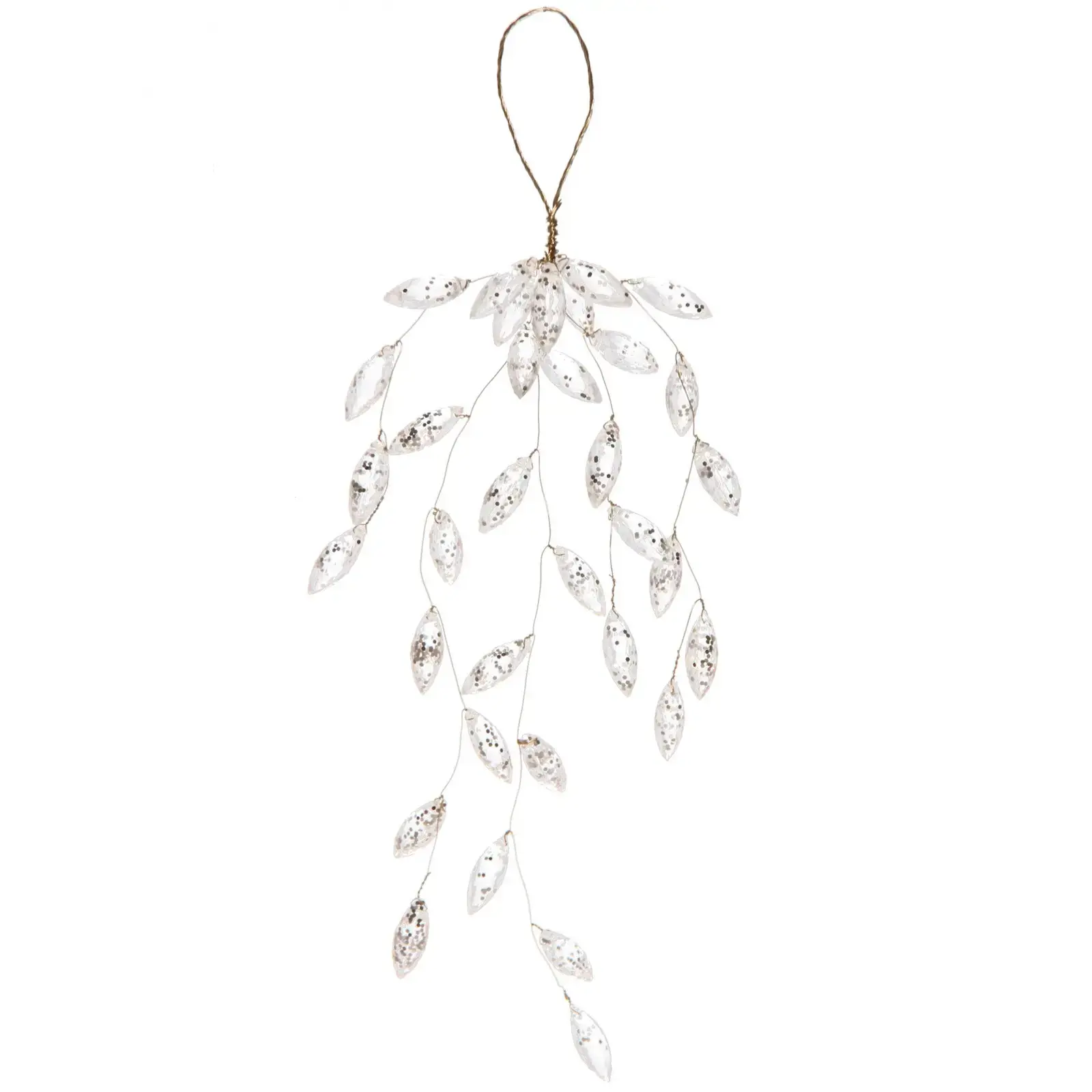 Добавьте волшебного сияния вашему праздничному декору с этой элегантной веткой. Её нежные прозрачные листья, украшенные золотистыми блёстками, создают атмосферу уюта и торжества.