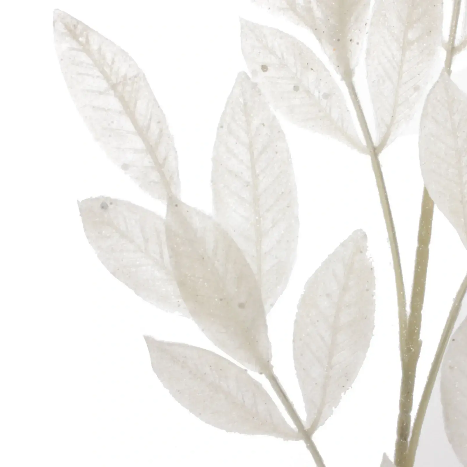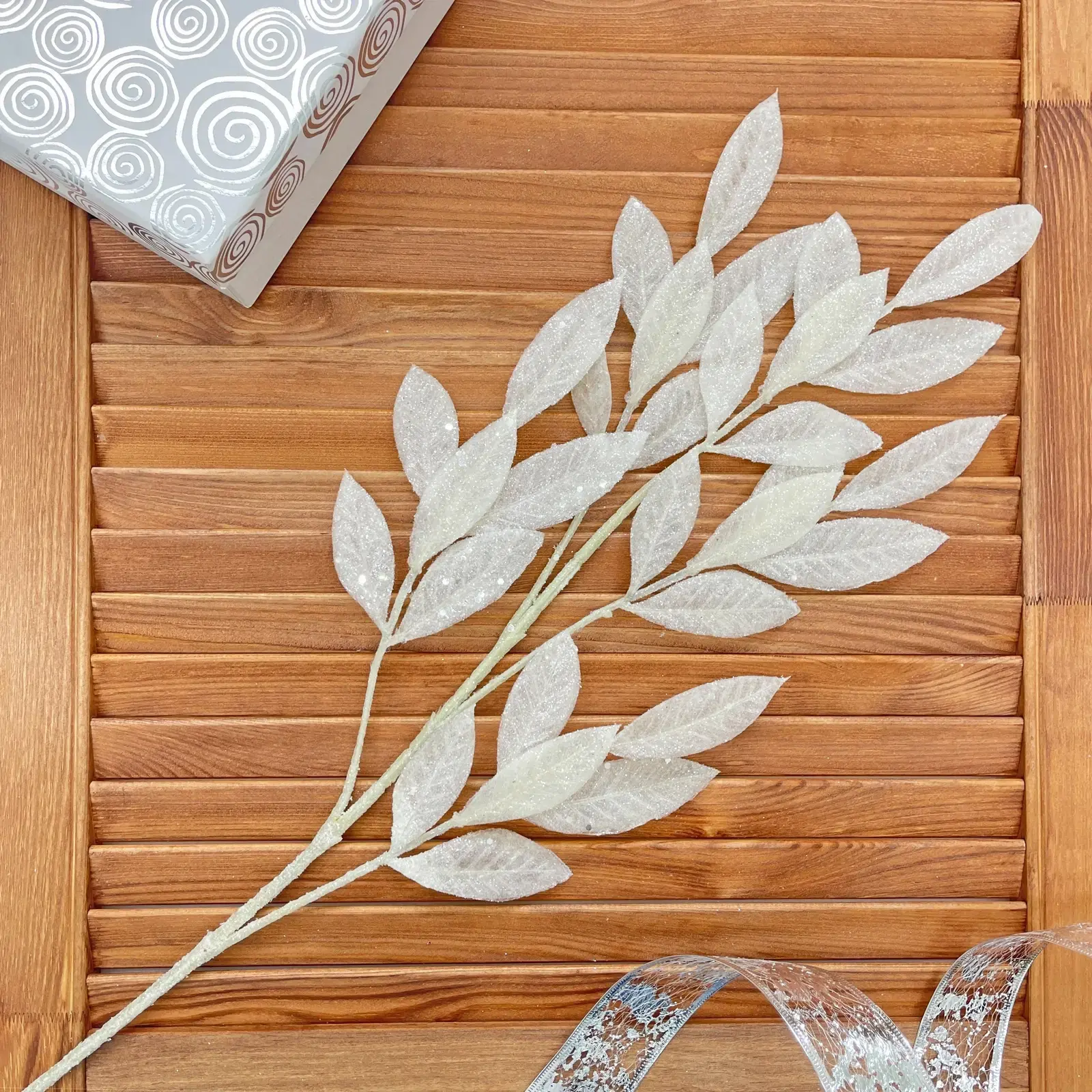 Эта ветка станет идеальным элементом декора для вашего дома, добавляя нотки свежести и элегантности. Белый цвет и изящная форма листьев делают её универсальным решением для любого интерьера. Используйте её в флористических композициях или как самостоятельный элемент декора, чтобы создать атмосферу уюта и гармонии.