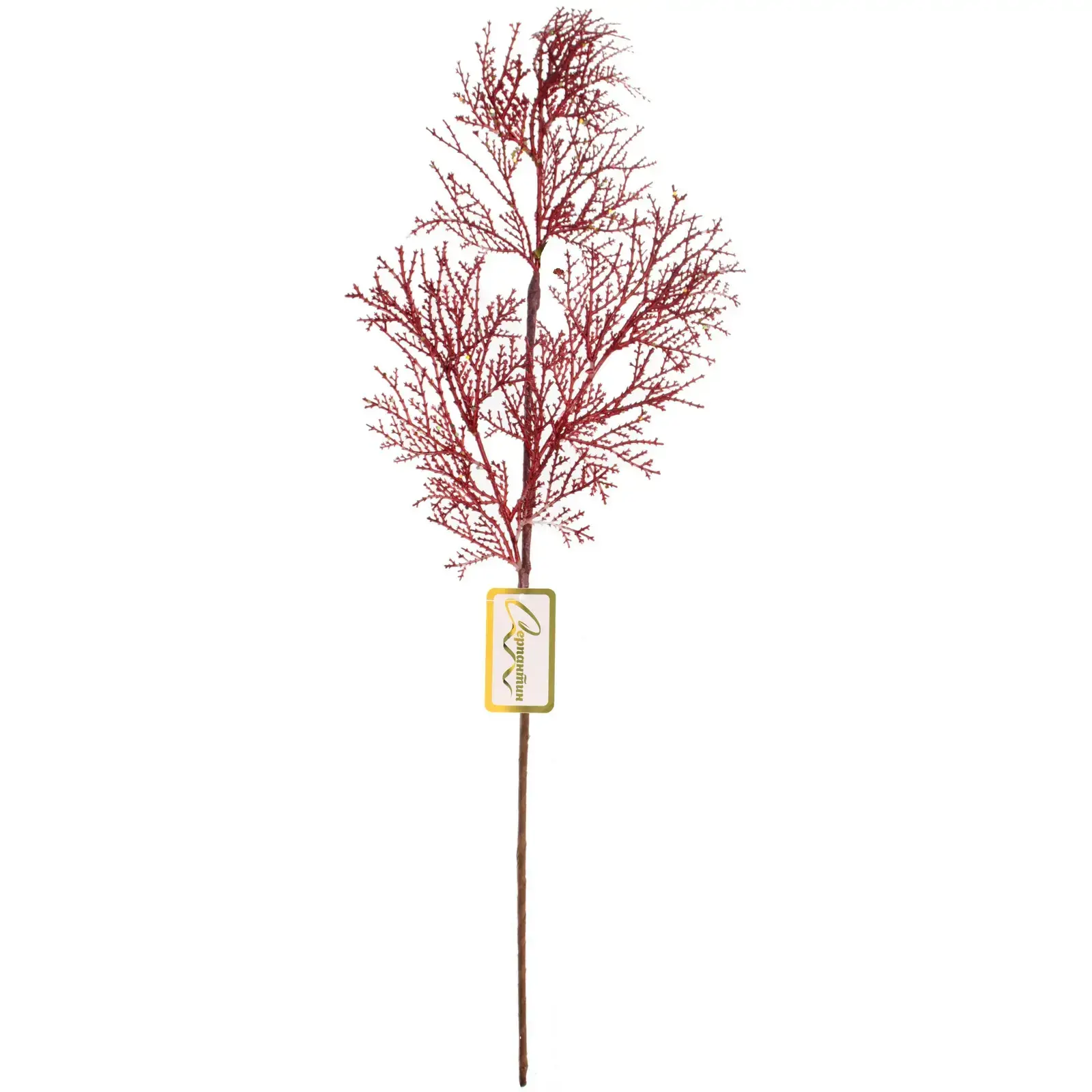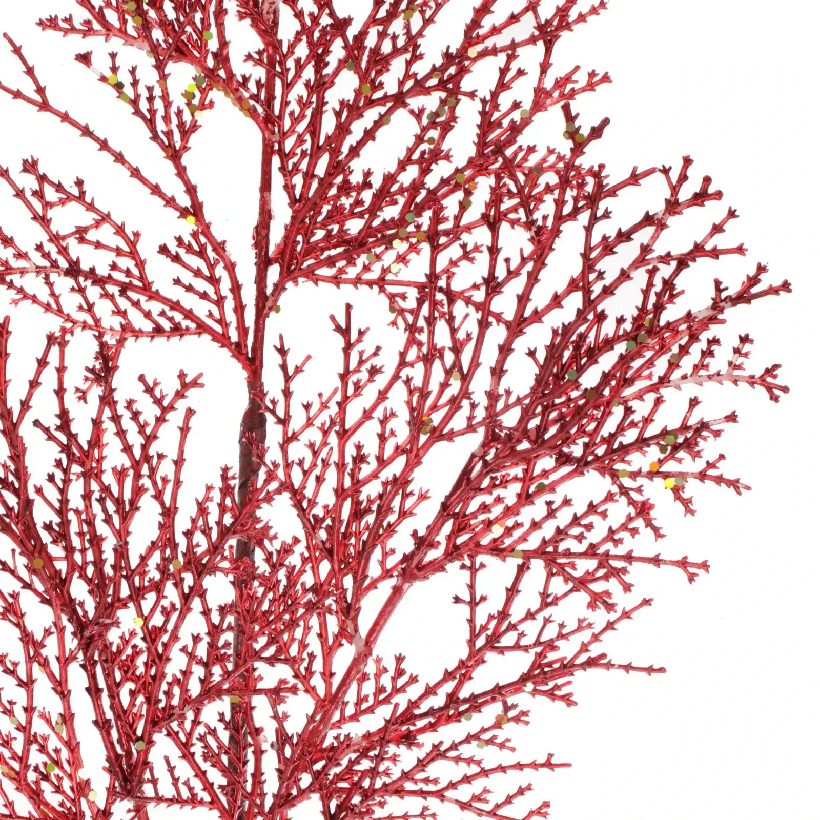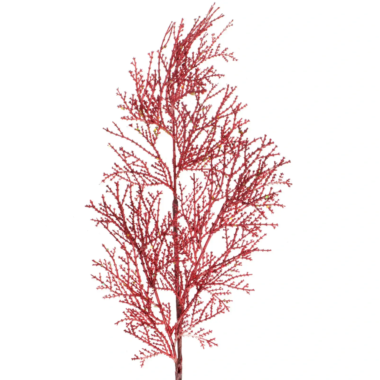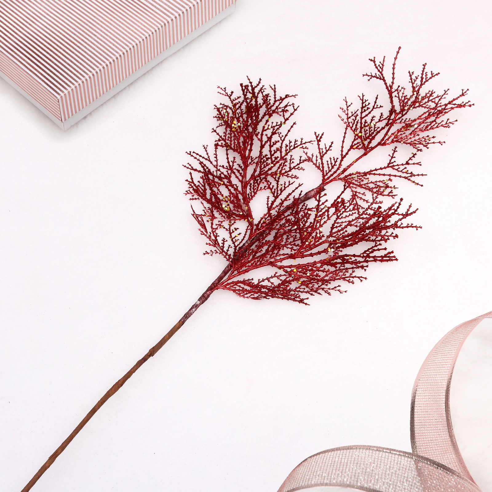 Ветка изготовлена из качественного пластика, что обеспечивает её долговечность и простоту в уходе. Она не требует полива и не увядает, что делает её идеальным выбором для тех, кто хочет добавить зелени в свой дом без лишних хлопот. Яркий красный цвет ветки привлекает внимание и создает праздничное настроение, что особенно актуально в преддверии Нового года и других праздников.