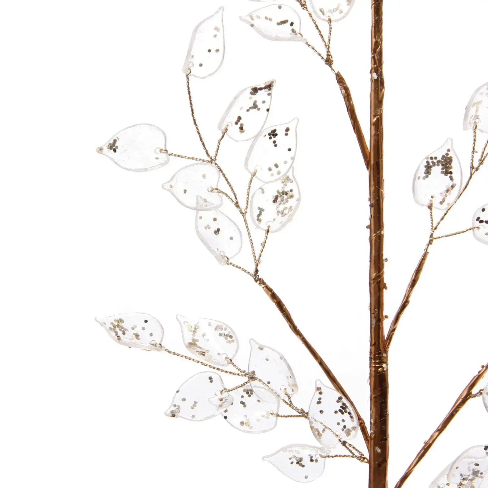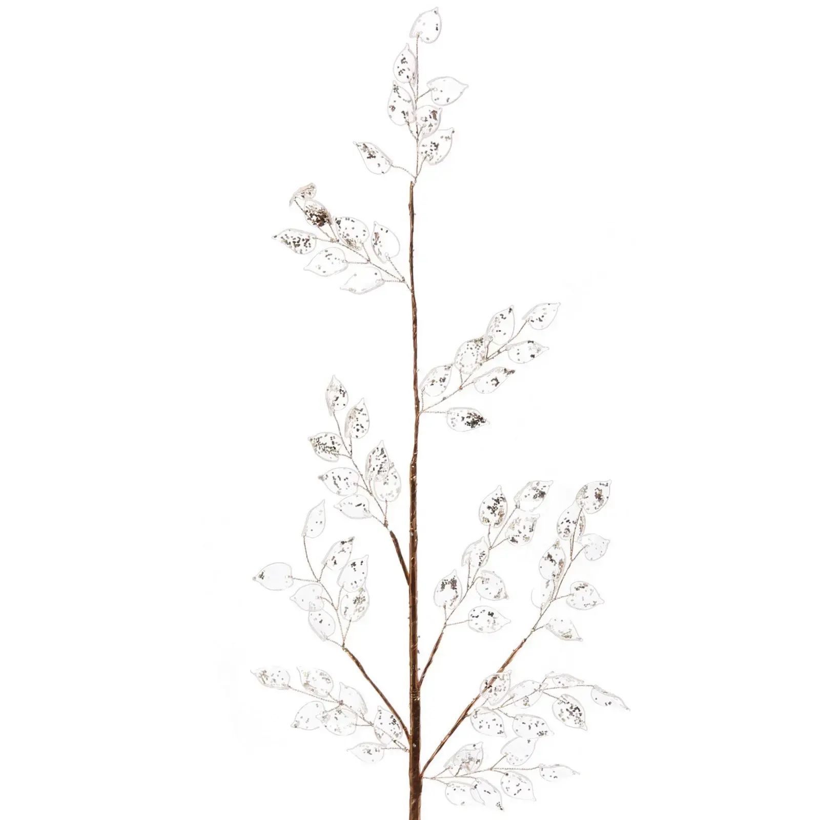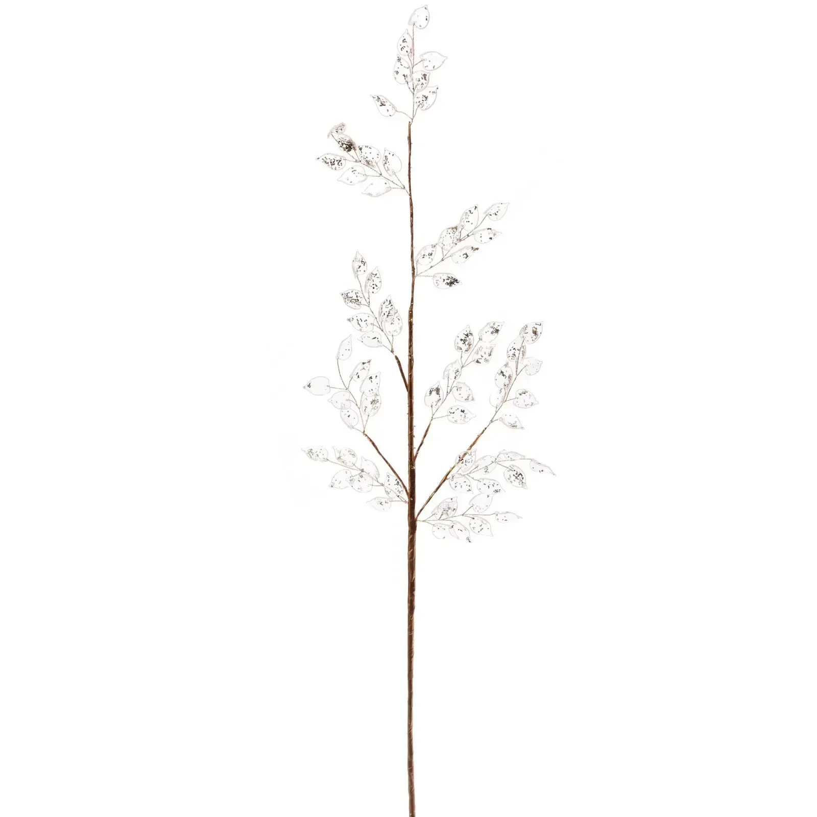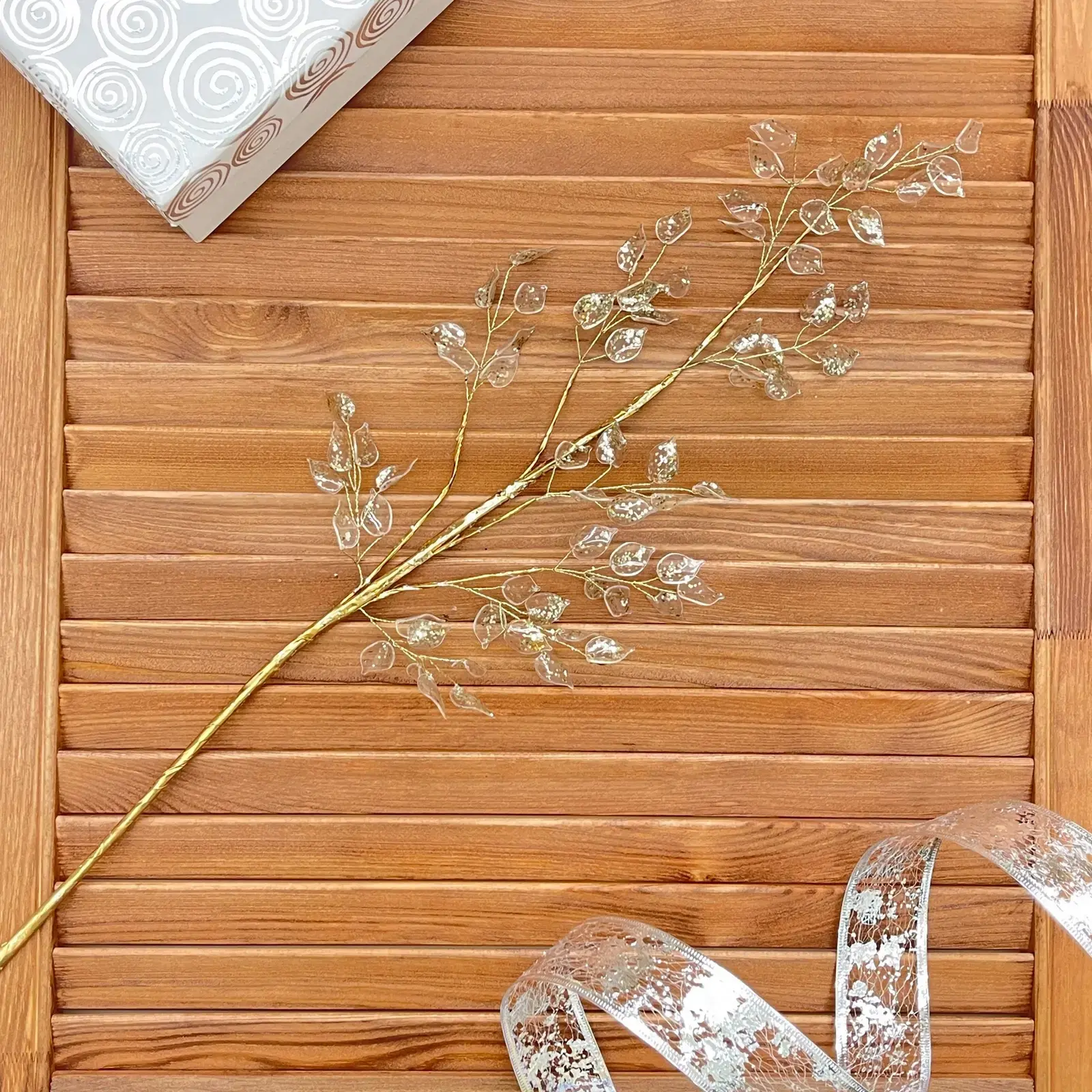Декоративная ветка с сияющими листьями создаст атмосферу праздника и уюта в любом помещении. Идеально подходит для оформления новогодних композиций, свадебных букетов или постоянного декора в гостиной.