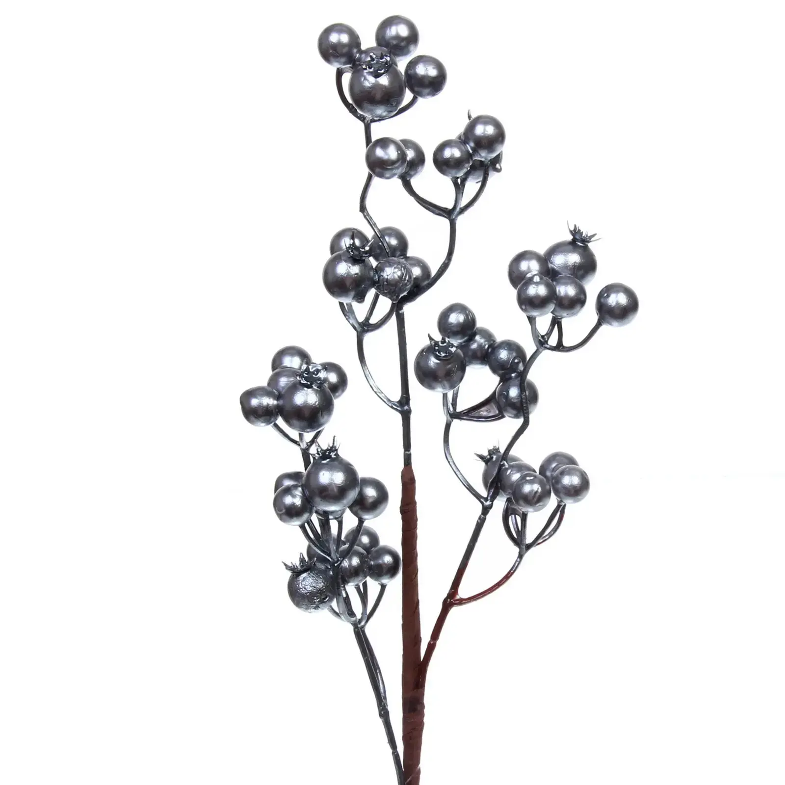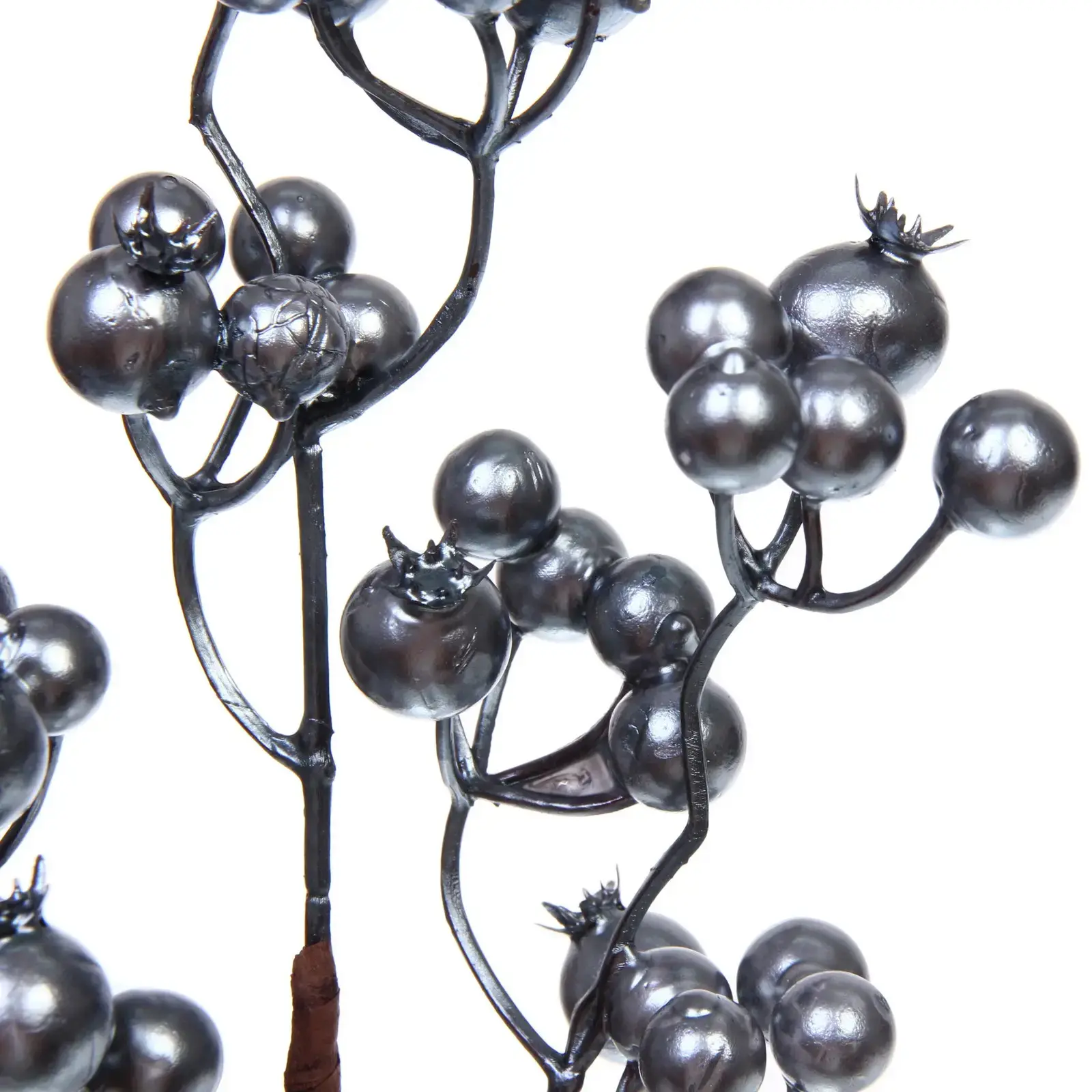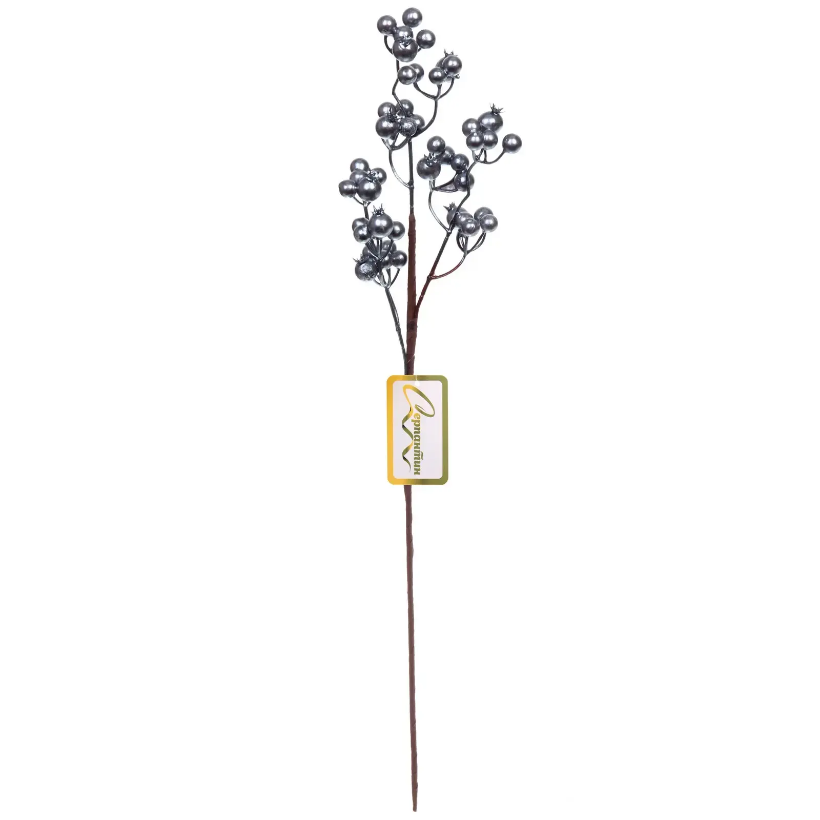 Длина ветки составляет 60 см, что делает ее удобной для использования в различных композициях. Материал — пластик, что обеспечивает легкость и прочность. Ветка имеет округлые элементы, которые напоминают ягоды, и выполнена в темных тонах, что добавляет ей шарма и изысканности.