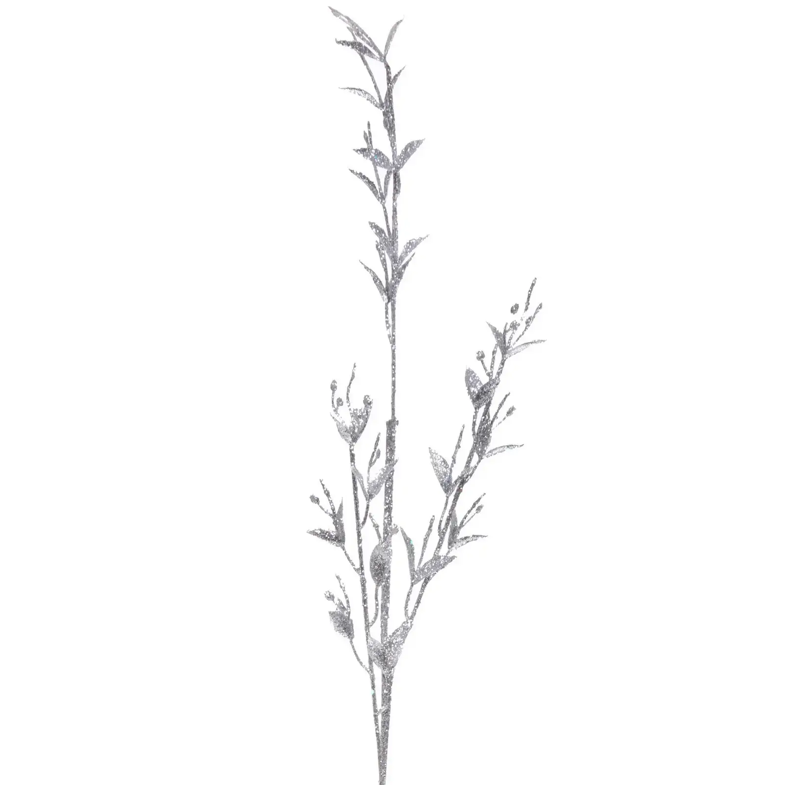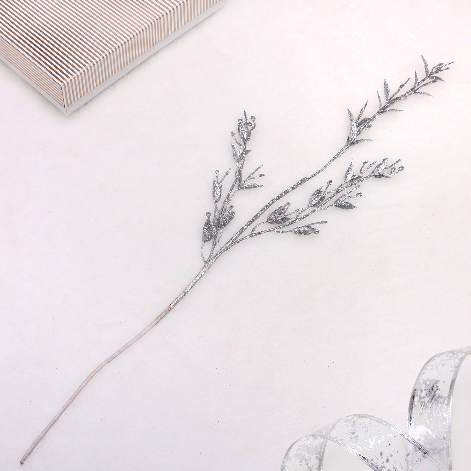 Длина ветки составляет 65 см, что делает ее удобной для размещения в различных вазах и композициях. Серебристый цвет и блестящая отделка придают ветке современный и стильный вид. Используйте ветку «Сказочные блики» для создания уникальных декораций и наслаждайтесь атмосферой волшебства в вашем доме!