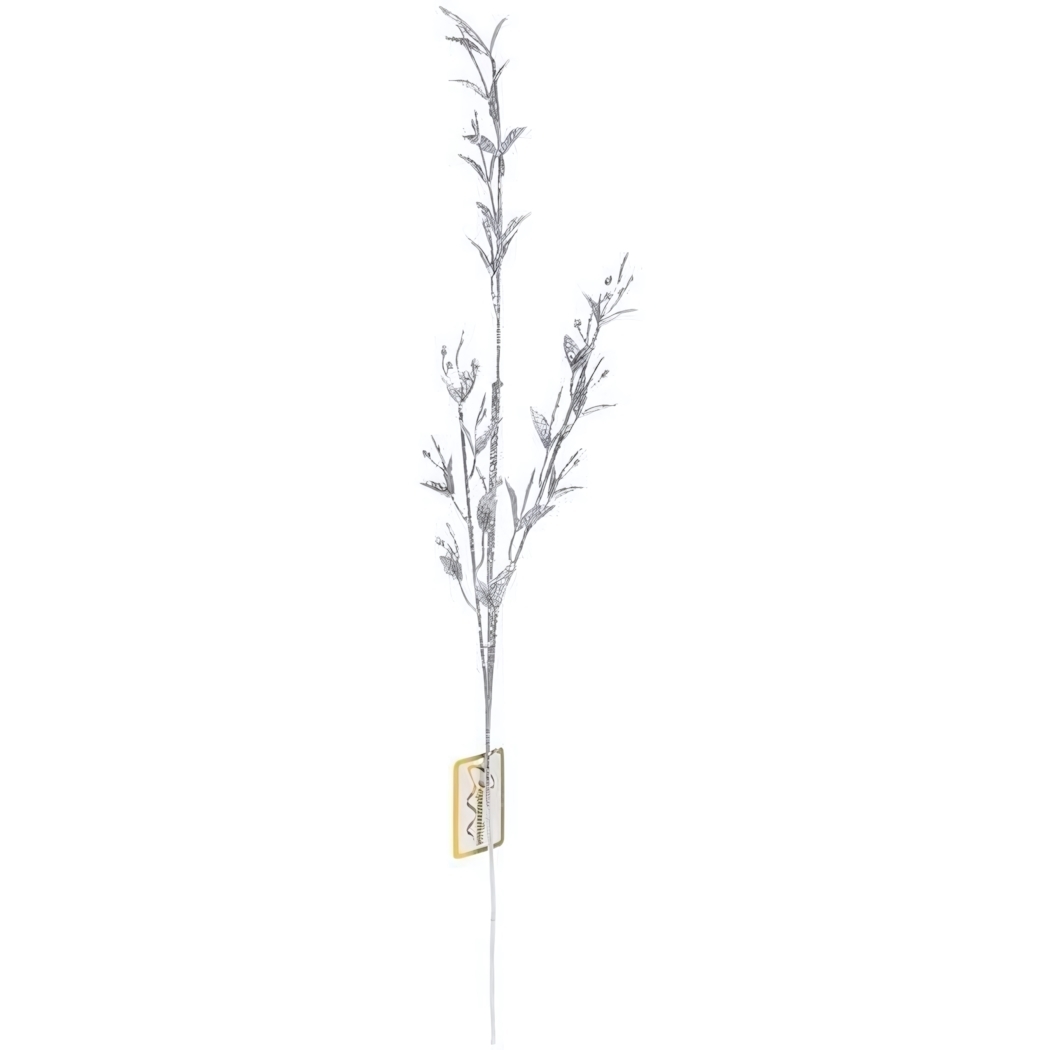 Длина ветки составляет 65 см, что делает её удобной для размещения в различных вазах и композициях. Серебристый цвет придаёт ей современный вид, а легкий материал позволяет легко манипулировать веткой, создавая желаемую форму. Не упустите возможность преобразить ваш интерьер с помощью этой стильной декоративной ветки!