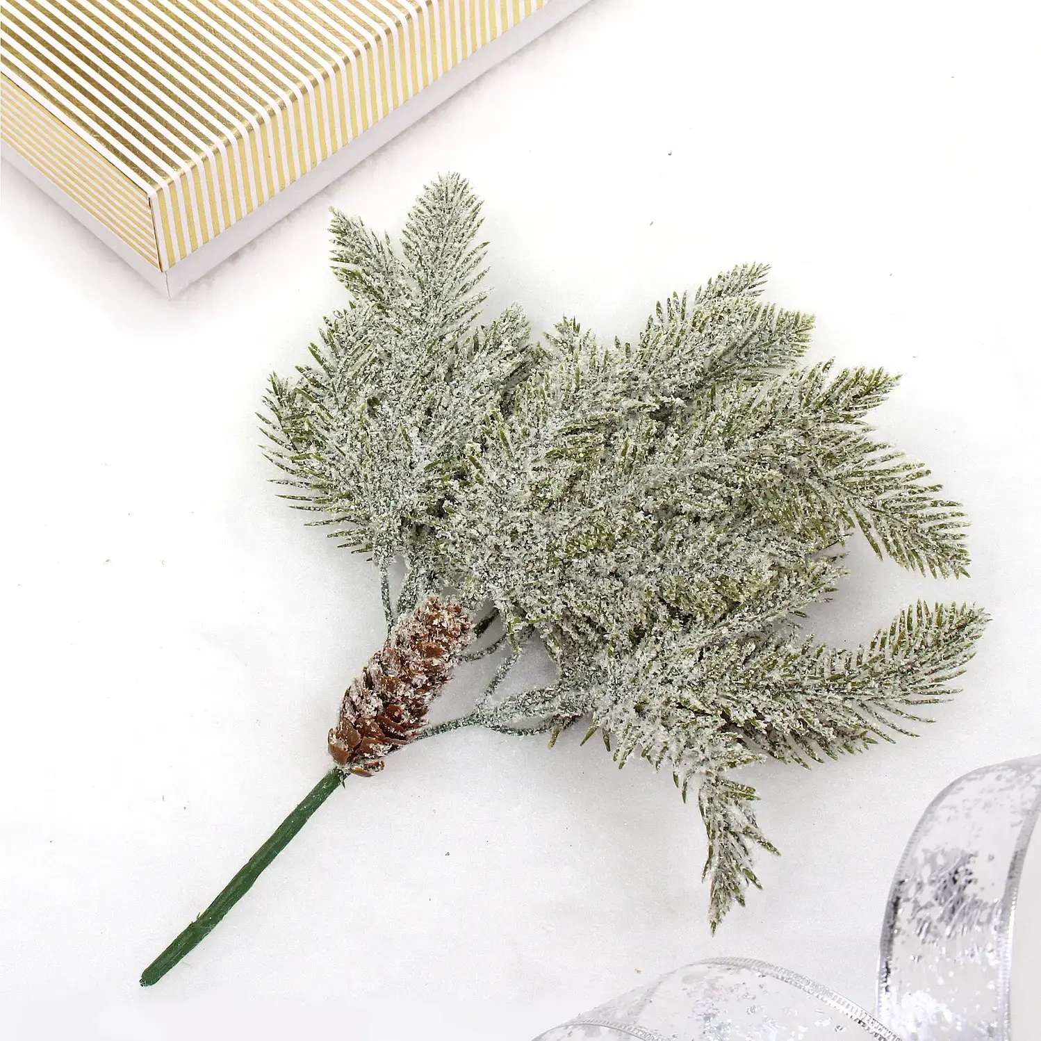 Эта искусственная ветка с густой зелёной хвоей и лёгким налётом искусственного снега мгновенно создаёт атмосферу зимней сказки в вашем доме. Небольшая коричневая шишка, покрытая белым инеем, добавляет натуральный и праздничный штрих — идеально для новогоднего декора.