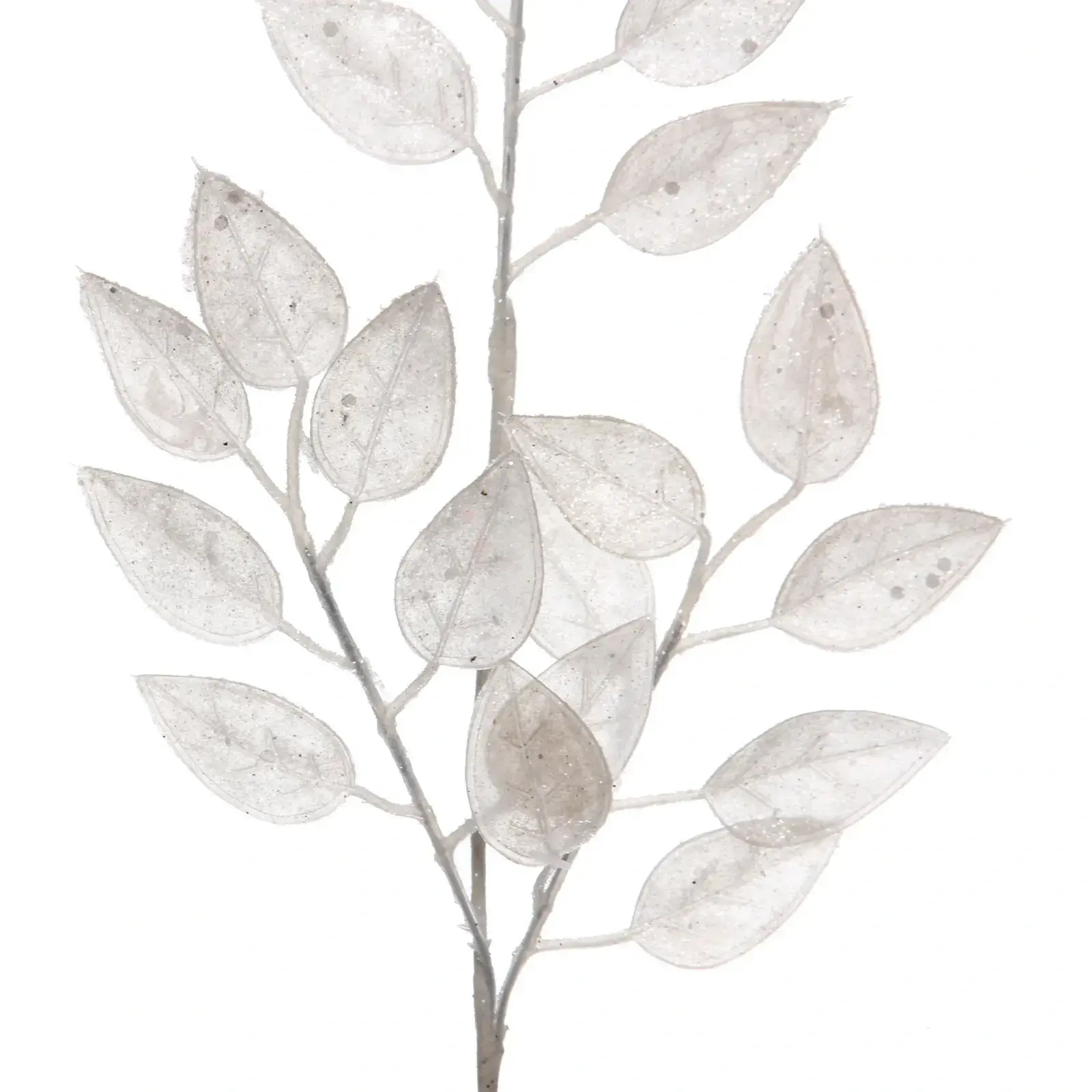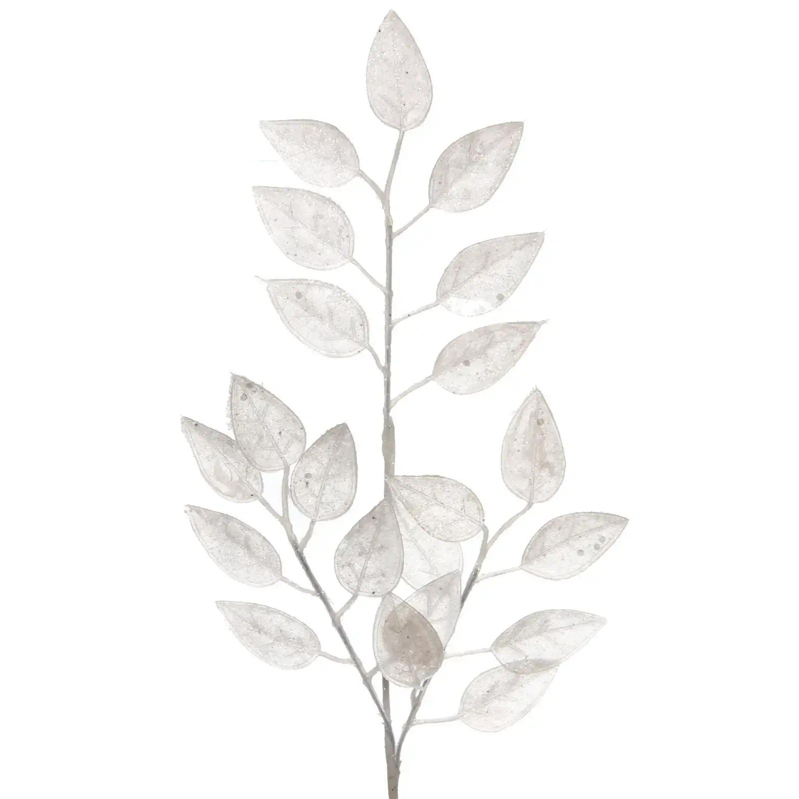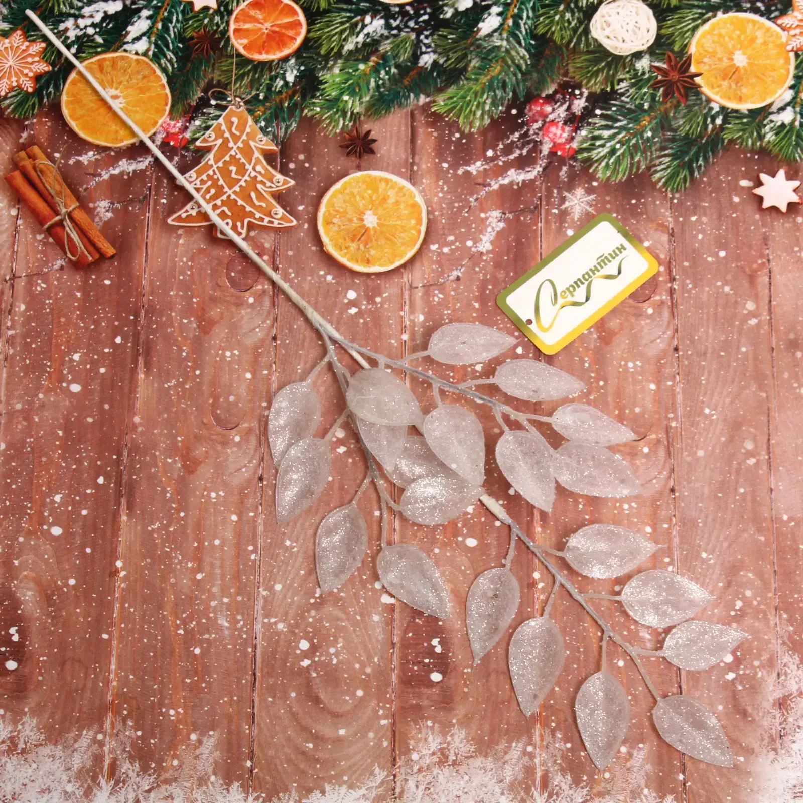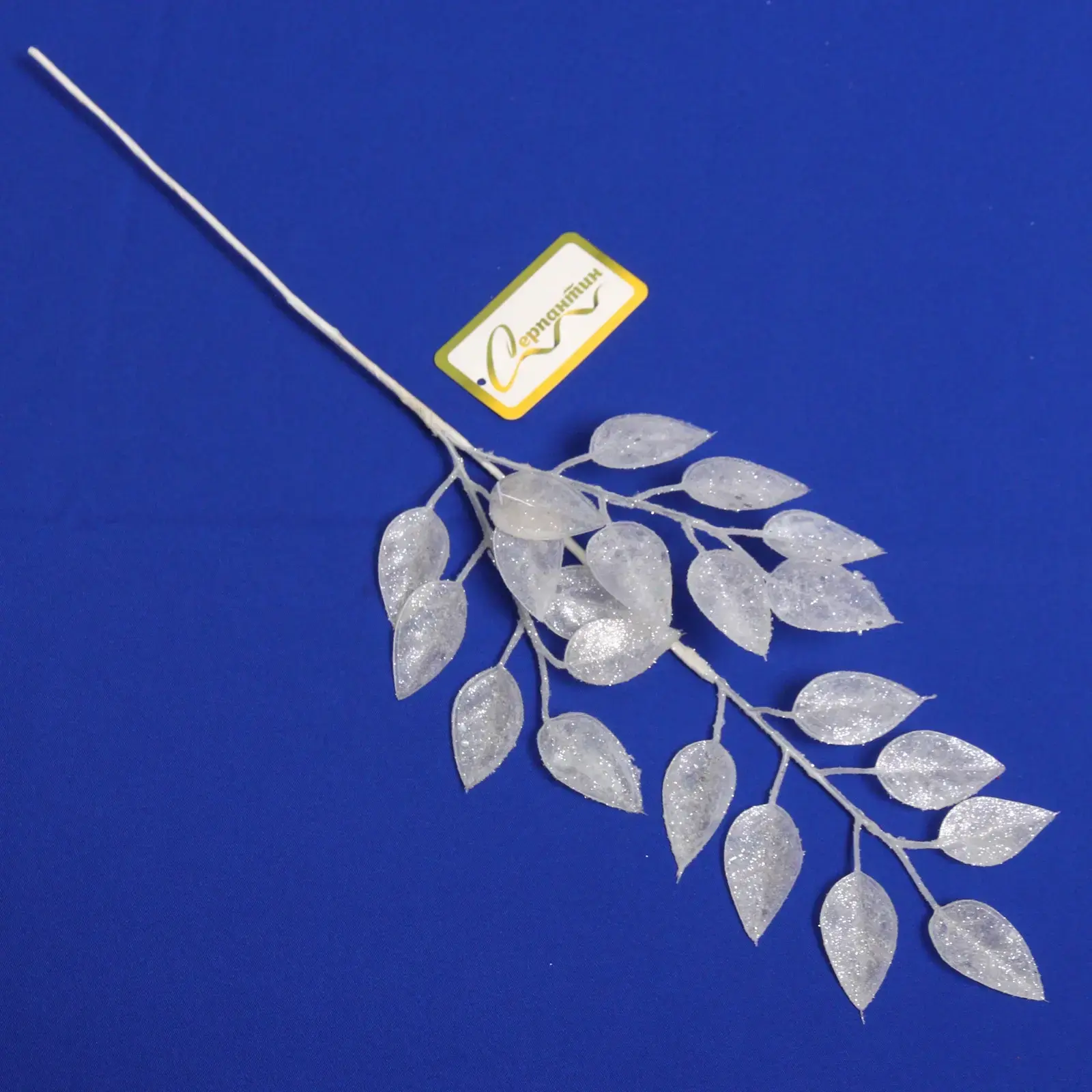 Ветка выполнена из качественного пластика, что обеспечивает её долговечность и легкость. Листья имеют рельефный узор, что придаёт им текстурированный вид, а блестящая поверхность добавляет эффект перелива. Этот декоративный элемент станет отличным выбором для создания праздничного настроения или просто для обновления интерьера в любое время года.